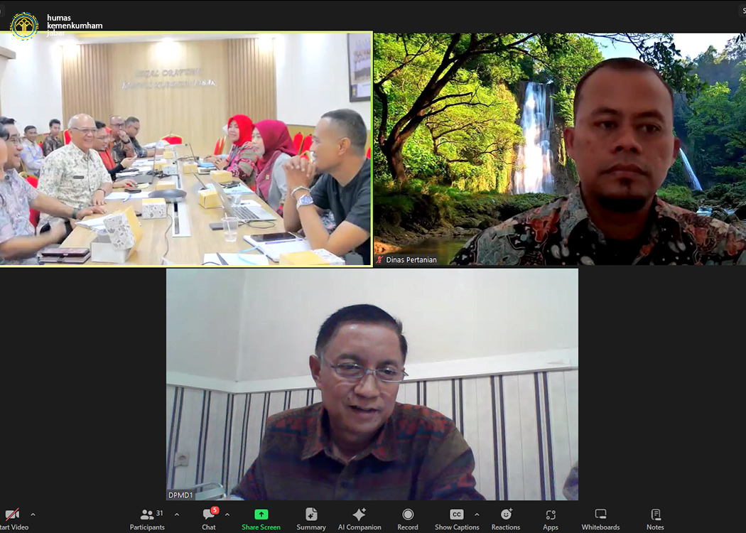 BANDUNG – Kantor Wilayah Kementerian Hukum dan HAM Jawa Barat (Kanwil Kemenkumham Jabar) dengan arahan dan instruksi oleh Kakanwil Masjuno dan Kadivyankumham Andi Taletting Langi melaksanakan Rapat Pembahasan Harmonisasi terhadap 3 Rancangan Peraturan Daerah bersama dengan Pemerintah Kabupaten Sukabumi secara luring dan daring (Kamis, 04/07/2024).