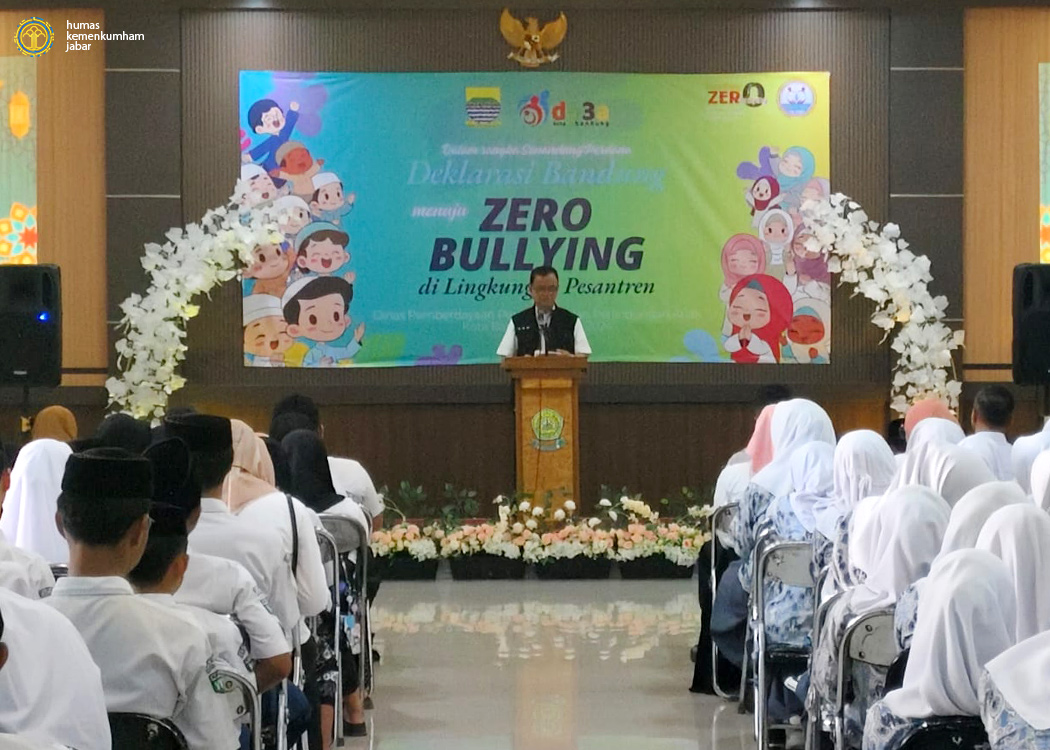 BANDUNG - Kepala Divisi Pelayanan Hukum dan HAM Kantor Wilayah Kementerian Hukum dan HAM Jawa Barat (Kanwil Kemenkumham Jabar) Andriensjah pada hari ini menghadiri kegiatan Deklarasi Bandung Menuju Zero Bullying di Lingkungan Pesantren yang diselenggarakan oleh Dinas Pemberdayaan Perempuan & Perlindungan Anak Kota Bandung dan bertempat di Yayasan Pondok Pesantren Nurul lman Bandung (Selasa, 23/10/2024).