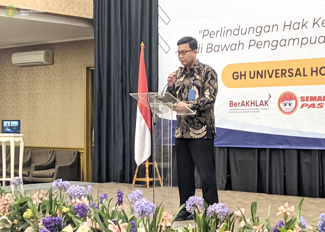 BANDUNG - Kantor Wilayah Kementerian Hukum dan HAM Jawa Barat (Kanwil Kemenkumham Jabar) pada menghadiri pelaksanaan kegiatan Focus Group Discussion bertema "Perlindungan Hak Keperdataan Orang yang Berada di Bawah Pengampuan oleh Balai Harta Peninggalan" yang diselenggarakan oleh Balai Harta Peninggalan (BHP) Jakarta dan bertempat di GH Universal Hotel, Kota Bandung (Rabu, 19/06/2024).