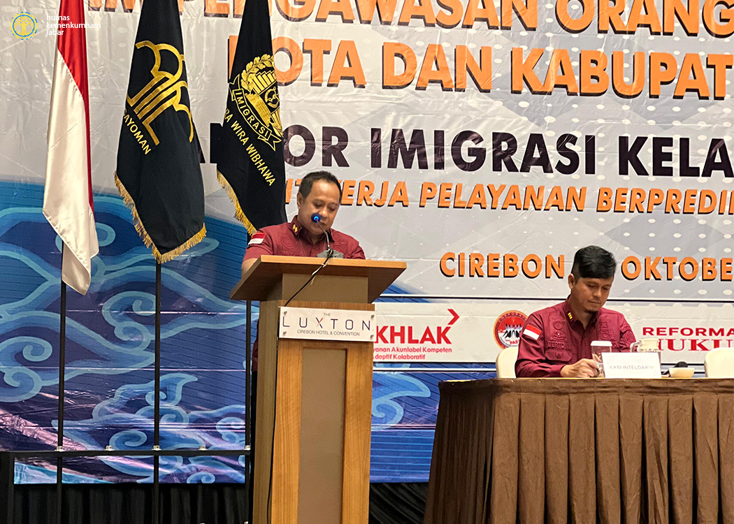 CIREBON – Kantor Wilayah Kementerian Hukum dan HAM Jawa Barat (Kanwil Kemenkumham Jabar) menghadiri pelaksanaan kegiatan Rapat Koordinasi Tim Pengawasan Orang Asing (Tim PORA) Wilayah Kota dan Kabupaten Cirebon Tahun 2024 yang diselenggarakan oleh Kantor Imigrasi Kelas I TPI Cirebon dan bertempat di Luxton Cirebon Hotel & Convention (Selasa, 15/10/2024).