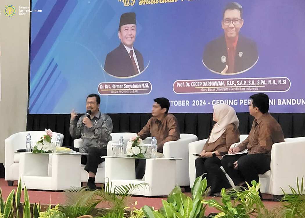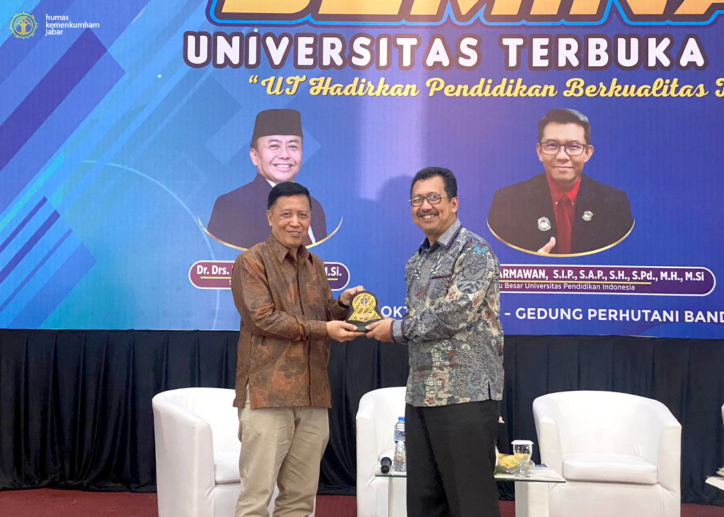 Bandung - Sesuai dengan arahan Kepala kantor Wilayah Kementerian Hukum dan HAM Jawa Barat, Masjuno, Kepala Divisi Pelayanan Hukum dan HAM, Andriensjah dan Kepala Bidang Pelayanan Hukum, Ave Maria Sihombing bersama Kepala Subbidang Pelayanan Kekayaan Intelektual, Dona Prawisuda menghadiri kegiatan sebagai narasumber dalam seminar oleh Universitas Terbuka dengan tema "UT Hadirkan Pendidikan Berkualitas Tanpa Batas" yang bertempat di Perum Perhutani Divisi Regional Jawa Barat (Sabtu, 19/10/2024).