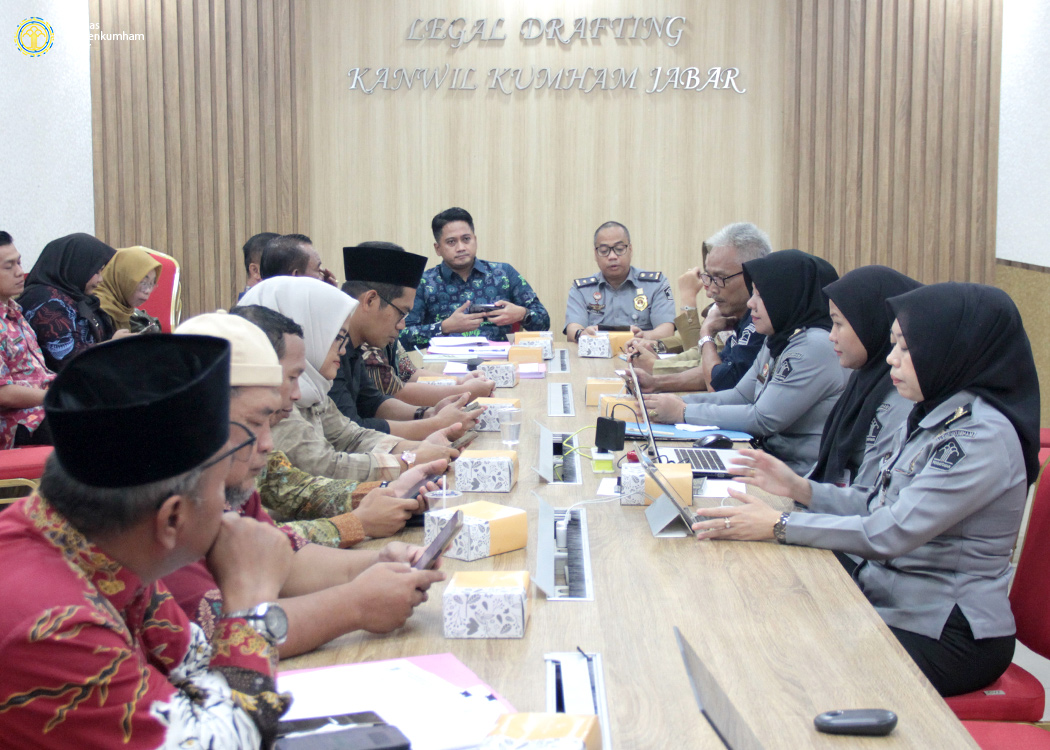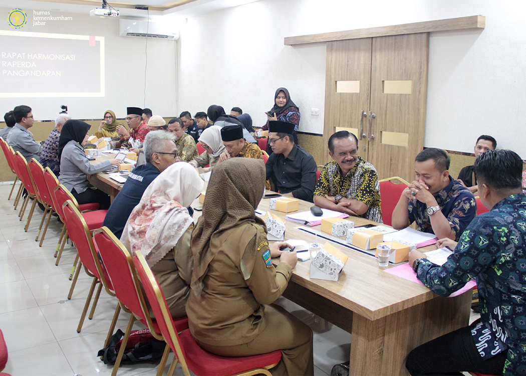 Pada ruang rapat, hadir Kepala Divisi Pelayanan Hukum dan HAM Andi Taletting Langi beserta Kepala Bidang Hukum Lina Kurniasari, Kepala Subbidang FPPHD Suhartini dan para Perancang PUU Kanwil Jabar menerima kedatangan anggota DPRD dan Perangkat Daerah Pemkab Pangandaran untuk membahas Raperda tentang Tata Kelola Sumur Resapan Air Pada Tempat-Tempat Tertentu, Raperda tentang Badan Usaha Milik Desa, Raperda tentang Penyelenggaraan Kearsipan dan Raperda tentang Penyelenggaraan Pasar Rakyat dan Penataan Pusat Perbelanjaan dan Toko Swalayan.