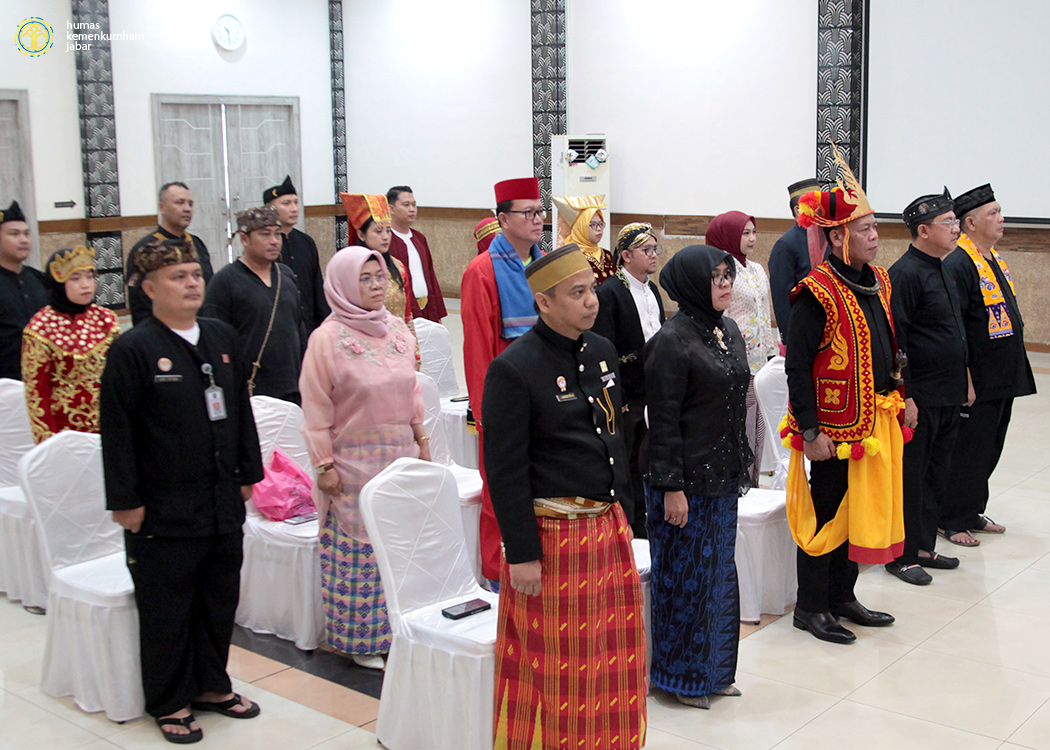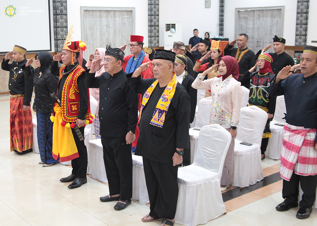 BANDUNG – Dalam rangka memperingati Hari Kemerdekaan Republik Indonesia ke-79, jajaran pejabat dan pegawai Kantor Wilayah Kementerian Hukum dan HAM Jawa Barat (Kanwil Kemenkumham Jabar) mengikuti jalannya Upacara Peringatan Detik-Detik Proklamasi yang berpusat di Istana Negara, Ibu Kota Nusantara (IKN), Kalimantan Timur (Sabtu, 17/08/2024).