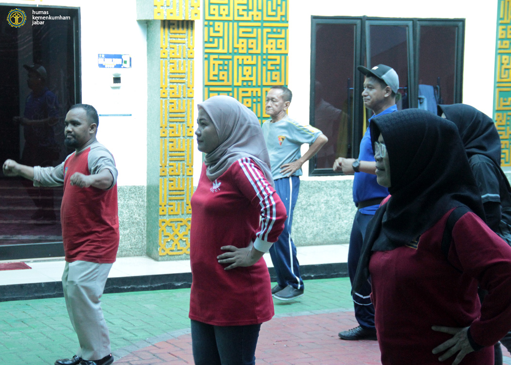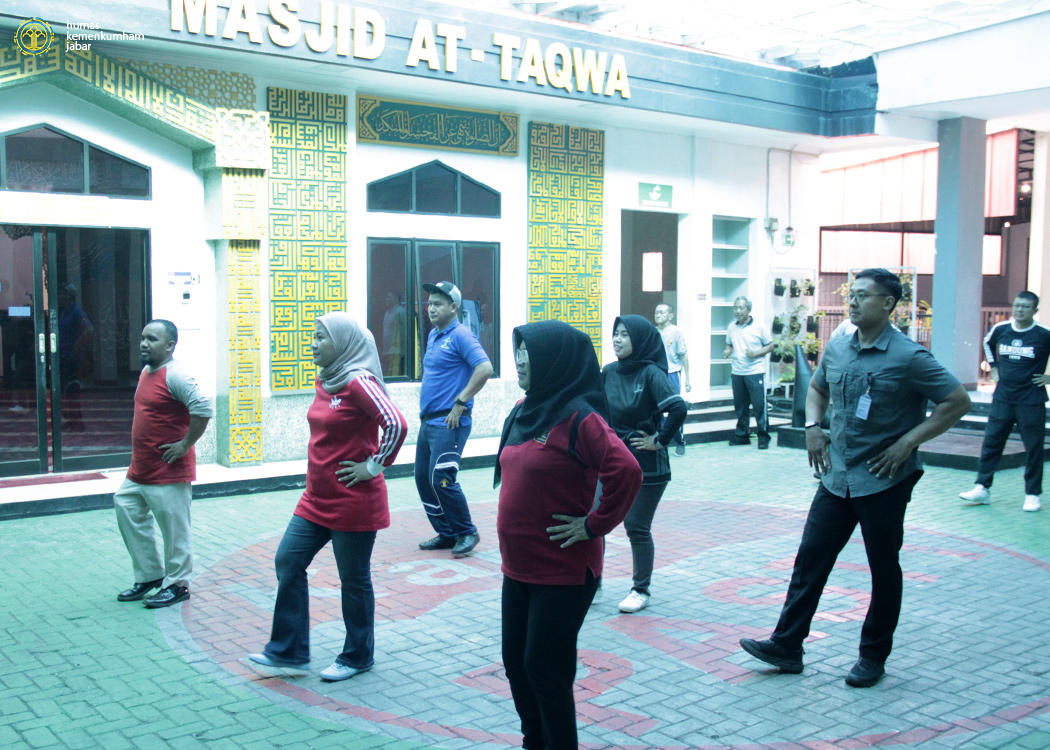 Pada halaman masjid At-Taqwa, Kanwil Jabar, para pejabat bersama jajaran pegawai Kanwil Jabar mengikuti aktifitas senam pagi yang diikuti seluruh Satker Kemenkumham se-Indonesia secara serentak melalui Zoom Meeting dan berlangsung selama sekitar 45 menit ini.