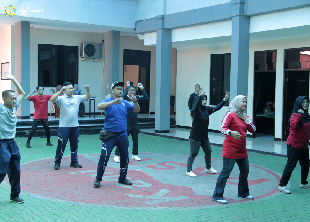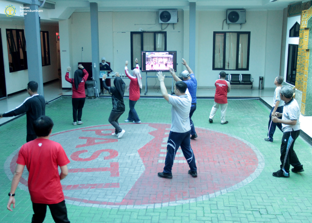 Untuk membantu menjaga pola hidup sehat para pegawainya, Kantor Wilayah Kementerian Hukum dan HAM Jawa Barat (Kanwil Kemenkumham Jabar) pada pagi ini mengikuti kegiatan Senam Pagi yang diselenggarakan secara virtual terpusat dari halaman gedung Sekretariat Jenderal Kemenkumham (Jumat, 14/06/2024).