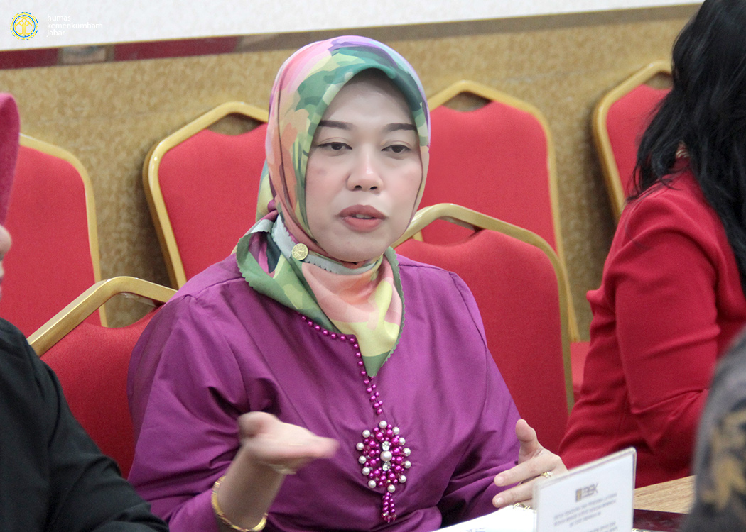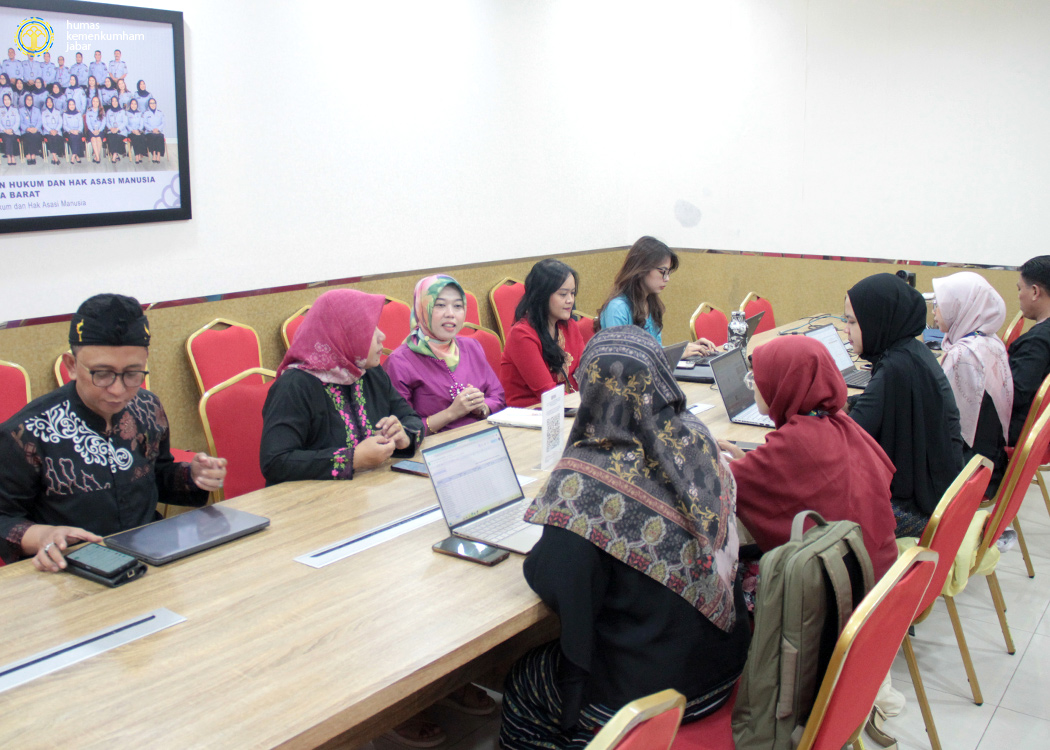 Pada ruang rapat Ismail Saleh, Kanwil Jabar, Kepala bidang Hukum Lina Kurnisari bersama Kepala Subbidang FPPHD Suhartini menerima kedatangan tim Dinas Kesehatan Jawa Barat yang dipimpin oleh Kepala Bidang Sumber Daya Kesehatan.