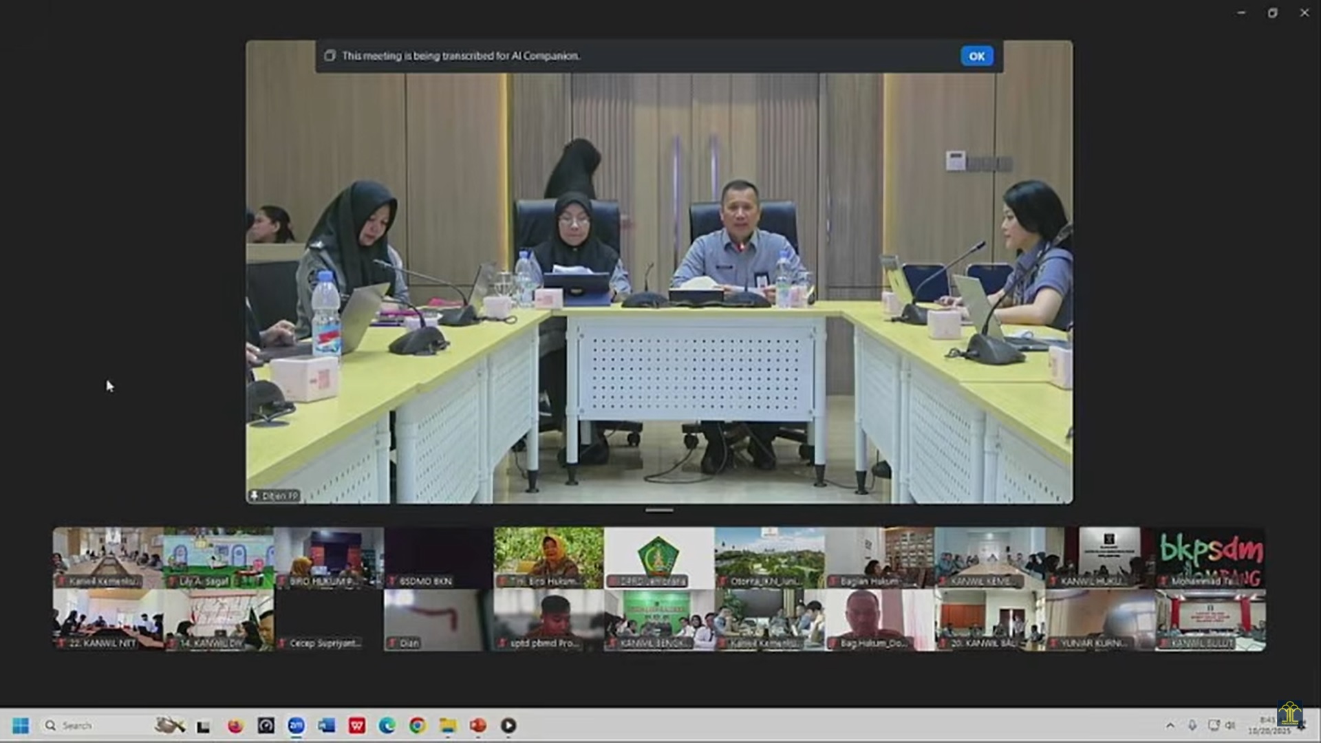 BANDUNG-Menindaklanjuti arahan Kepala Kantor Wilayah Kementerian Hukum Jawa Barat Asep Sutandar, Jajaran Perancang Perundang-Undangan Kanwil Kemenkum Jawa Barat ikuti secara virtual Sosialisasi Pelaksanaan Uji Kompetensi bagi Perancang Peraturan Perundang-undangan yang bertempat di Lounge Kanwil Kemenkum Jabar, Senin (20/10/25). Kegiatan ini diselenggarakan oleh Direktorat Jenderal Peraturan Perundang-undangan (Dirjen PP) Kemenkum dan dibuka langsung oleh Direktur Jenderal Peraturan Perundang-undangan. Kegiatan ini bertujuan untuk memberikan informasi dan persiapan menyeluruh menjelang pelaksanaan uji kompetensi yang dijadwalkan pada pertengahan November mendatang.