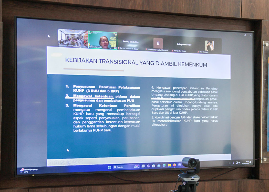 Bandung, Kamis 26 Juni 2025 – Kantor Wilayah Kementerian Hukum Jawa Barat (Kanwil KemenkumJabar) menyelenggarakan kegiatan Pendalaman Materi Pembinaan Perancang Peraturan Daerah dan Perancangan Peraturan Daerah, dengan tema “Implikasi Undang-Undang Nomor 1 Tahun 2023 tentang Kitab Undang-Undang Hukum Pidana terhadap Ketentuan Pidana Dalam Peraturan Daerah”.