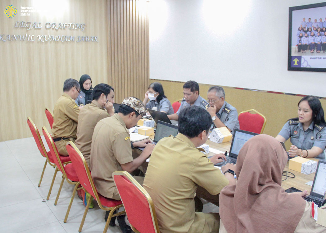 BANDUNG - Pelaksanaan rapat harmonisasi terhadap Rancangan Peraturan Daerah (Raperda) Provinsi Jawa Barat yang dilaksanakan oleh Bidang Hukum Kanwil Kementerian Hukum Jabar sesuai dengan arahan Kepala Kantor Wilayah Asep Sutandar dan sejalan dengan kebijakan Menteri Hukum Supratman Andi Agtas dan diteruskan oleh Kepala Divisi Peraturan Perundang-Undangan dan Pembinaan Hukum Funna Maulia Massaile kepada jajarannya. Hal ini pun merupakan upaya Kemenkum memberikan pelayanan terbaik kepada masyarakat yang dilaksanakan bersama Perancang Perundang-undangan Kelompok Kerja (Pokja) 3 (Yayan A.S., Hari H., Nevrina H. dan Bekti C. serta Risma).