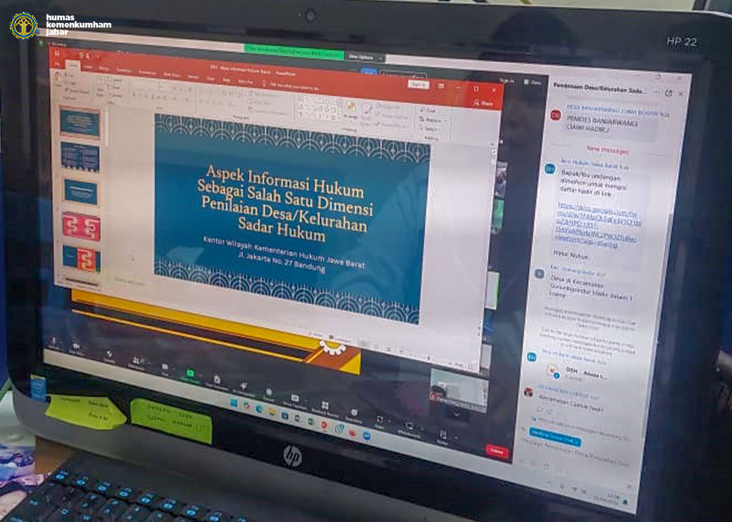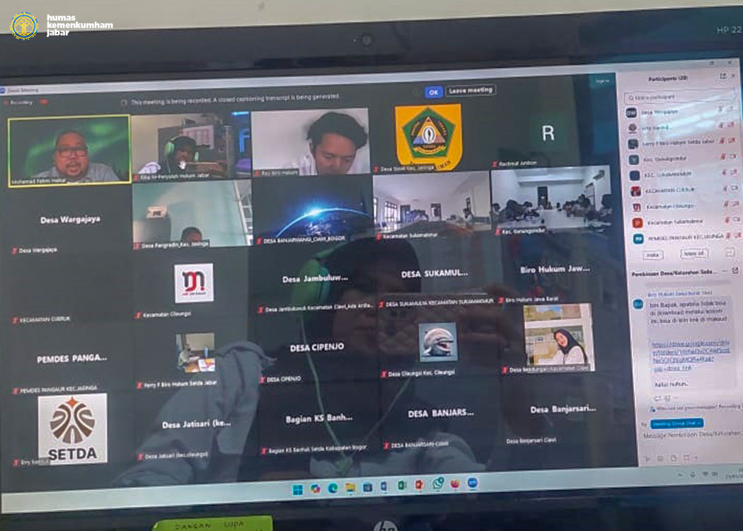 Kegiatan yang dilaksanakan secara daring ini dihadiri oleh Kepala Divisi Peraturan Perundang-Undangan dan Pembinaan Hukum Funna Maulia Massaile, perwakilan dari Pemerintah Daerah Provinsi Jawa Barat, Pemerintah Daerah Kabupaten Bogor dan lebih dari 30 Kepala Desa dari Kabupaten Bogor menunjukkan antusiasme tinggi dalam mendukung kegiatan ini. Acara dibuka oleh Kepala Biro Hukum dan HAM Pemerintah Provinsi Jawa Barat, yang dalam sambutannya menyampaikan apresiasi dan ucapan terima kasih kepada para Kepala Desa yang telah hadir. Ia menegaskan bahwa peran pemimpin daerah sangat penting dalam mendorong kesadaran hukum di masyarakat serta menciptakan lingkungan yang harmonis di masyarakat.