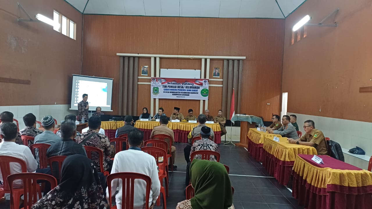 Kuningan, 8 Juli 2025 – Desa Windujanten, Kecamatan Kadugede, Kabupaten Kuningan, hari ini menjadi lokasi penilaian Desa/Kelurahan Sadar Hukum. Menindaklanjuti arahan Kepala Kantor Wilayah Kementerian Hukum Jawa Barat Asep Sutandar, Penyuluh Hukum Elin Rahayu dan tim bersama Pemerintah Provinsi Jawa Barat laksanakan kegiatan di Aula Kantor Desa Windujanten dan dihadiri oleh berbagai elemen masyarakat, termasuk perangkat desa, MUI Desa, Karang Taruna, Ibu-ibu PKK, perwakilan Rukun Warga, Babinsa, dan Binmas. Penilaian ini merupakan bagian dari upaya Kemenkum dan Pemerintah Provinsi Jawa Barat untuk meningkatkan kesadaran hukum di tengah masyarakat.