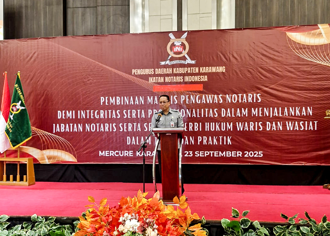 KARAWANG – Kantor Wilayah Kemenkum Jawa Barat (Kemenkum Jabar) menggelar Diskusi Hukum bertajuk “Pembinaan Majelis Pengawas Notaris Demi Intergritas dan Profesionalitas Dalam Menjalankan Jabatan Notaris Serta Serba Serbi Hukum Waris dan Wasiat Dalam Teori dan Praktik” di Hotel Mercure Karawang, Selasa (23/9/2025).