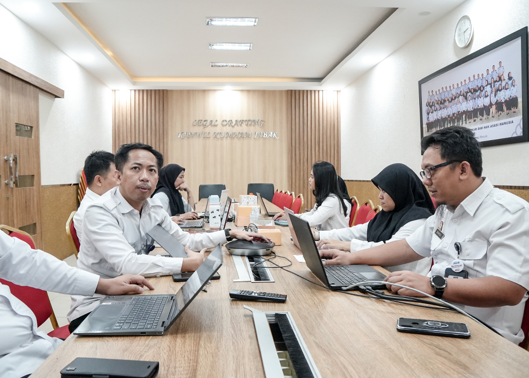 BANDUNG – Sesuai Arahan Kakanwil Kemenkum Jabar, Asep Sutandar, terkait pelaksanaan Harmonisasi Produk Hukum Daerah, melalui KadivP3H Jabar, Funna Maulia, menugaskan Tim Perancang Kanwil dalam hal ini Tim Pokja Harmonisasi 2, hari ini, Rabu, 23 Juli 2025, terima permohonan harmonisasi 1 (Satu) Rancangan Peraturan Bupati Kabupaten Bekasi bertempat di Ruang Rapat Ismail Saleh.