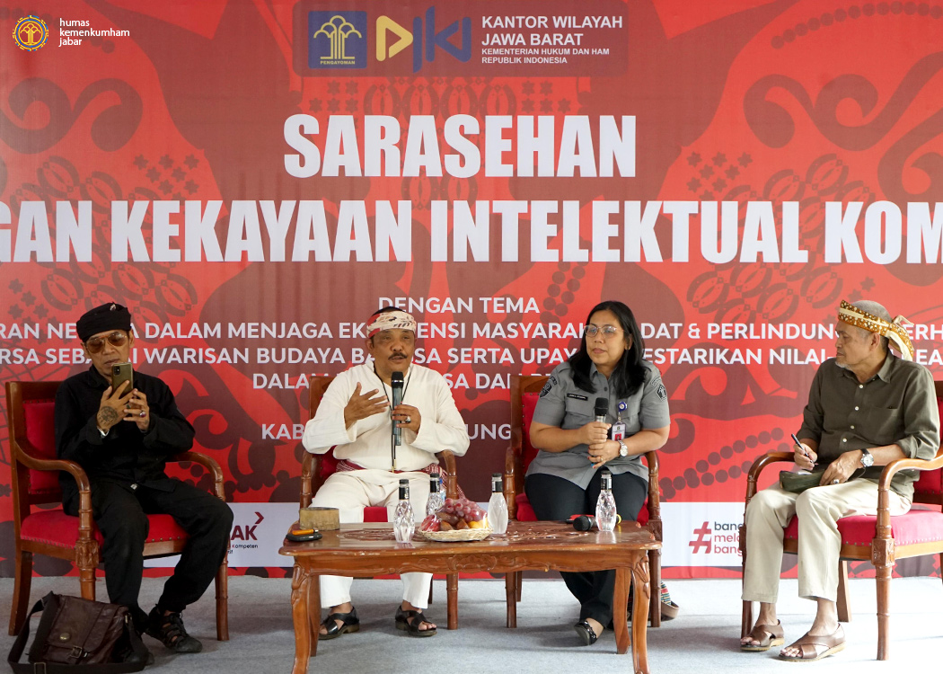 Kab. Bandung - Kantor Wilayah Kemenkumham Jabar (Kanwil Kemenkumham Jabar) bersama Baresan Olot Masyarakat Adat (BOMA) siang ini (Senin, 22/07/2024) menyelenggarakan Sarasehan Perlindungan Kekayaan Intelektual Komunal (KIK) dengan mengusung tema “Kehadiran Negara Dalam Menjaga Eksistensi Masyarakat Adat dan Perlindungan Terhadap Hasil Cipta Karsa Sebagai Warisan Budaya Bangsa serta Upaya Melestarikan Nilai-nilai Kearifan Lokal Dalam Berbangsa dan Bernegara”.