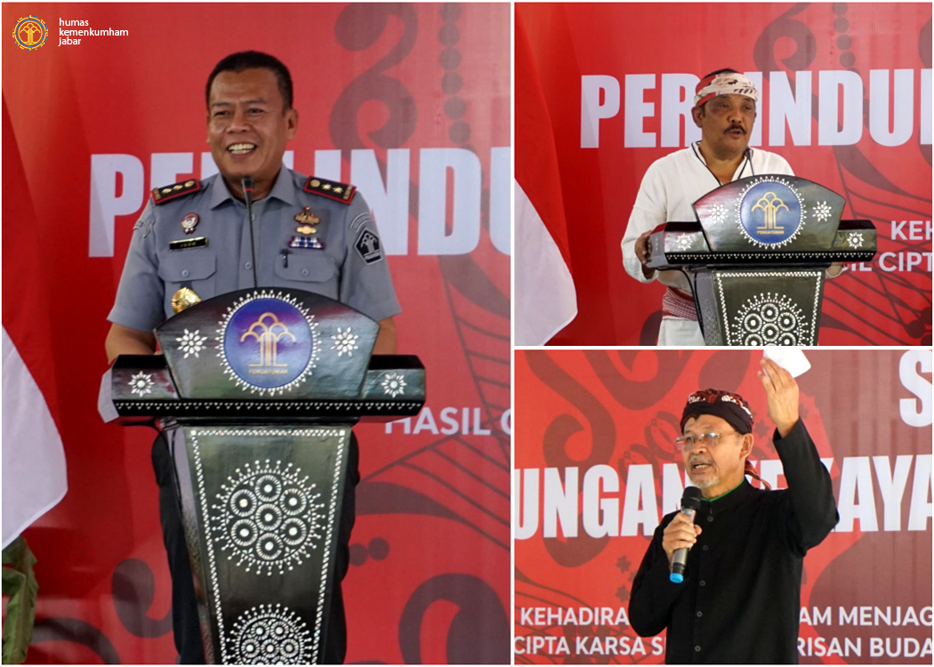 Acara dibuka secara resmi oleh Kepala Kantor Wilayah Masjuno didampingi Pimpinan Tinggi Pratama Kanwil Kemenkumham Jabar dengan Narasumber Analis Kebijakan Muda DJKI Laina Sumarlina Sitohang, Majelis Masyarakat Sunda Ganjar Kurnia, Seniman Jawa Barat dan Praktisi Budi Dalton, Duta Sawala Eka Santosa, dan Forum Penyelamat Hutan Jawa Dadang Hendaris.