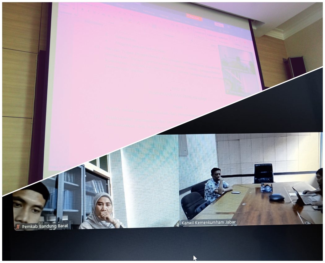 Tampak terhubung secara virtual Perancang Peraturan Perundang-Undangan Zonasi Kabupaten Bandung Barat (Bekti, Hafiel dan Ferdinand), perwakilan dari Inspektorat Daerah Kabupaten Bandung Barat, Dinas Pemuda dan Olahraga Pemerintah Kabupaten Bandung Barat dan Bagian Hukum Setda Pemerintah Kabupaten Bandung Barat.