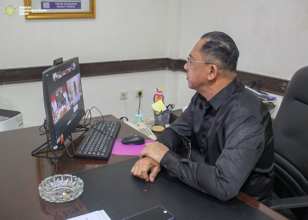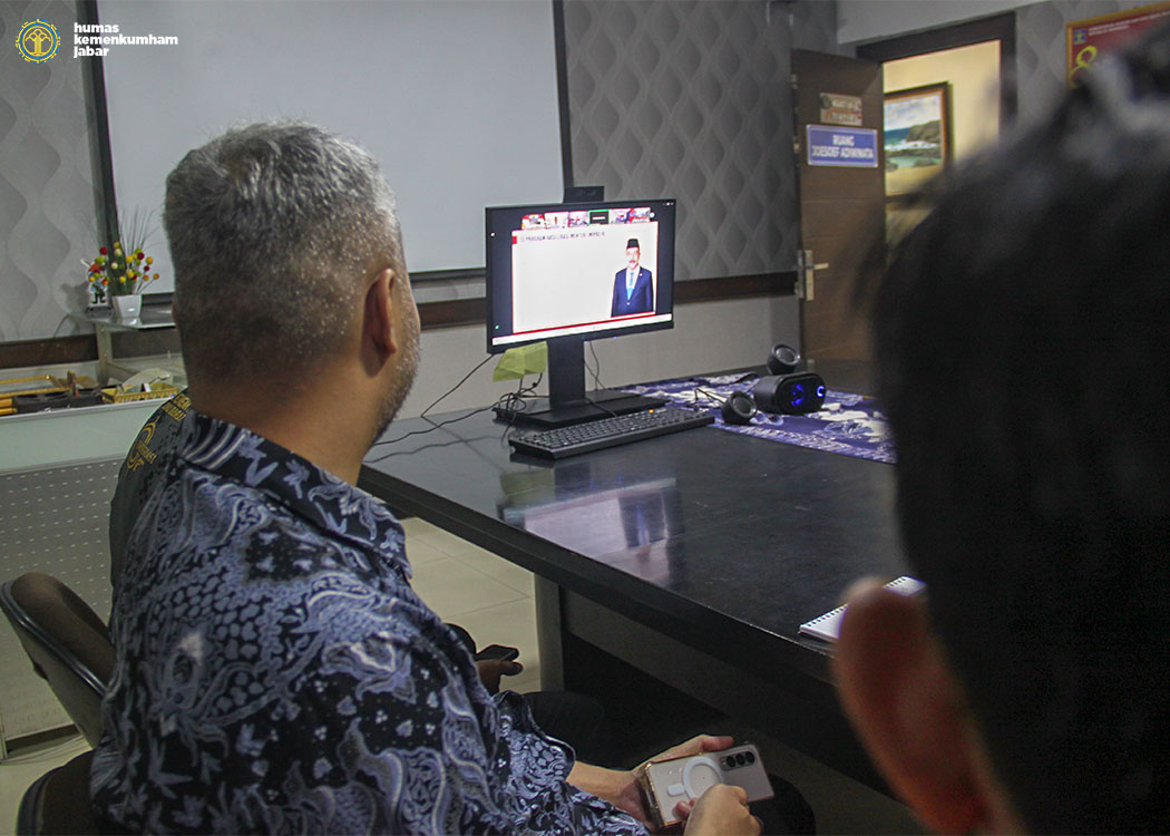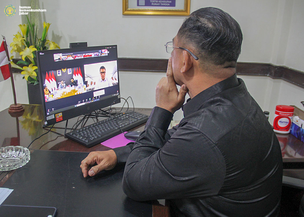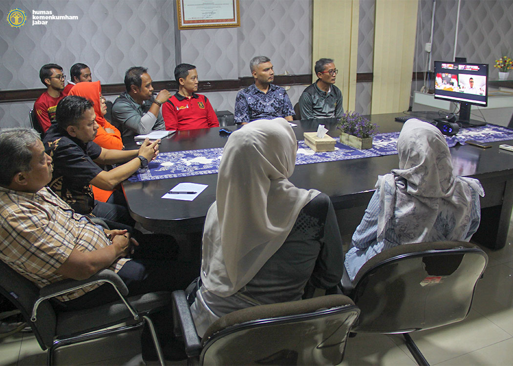 BANDUNG-Berdasarkan arahan dari Kepala Kantor Wilayah Kementerian Hukum dan Hak Asasi Manusia Jawa Barat Masjuno yang ditindaklanjuti oleh Kepala Divisi Keimigrasian Filianto Akbar, Kepala Bidang Pembinaan, Bimbingan dan Teknologi Informasi Candra Kushendar, Kepala Bidang Intelijen dan Penindakan Keimigrasian Alberthus Santani Fenat, Kepala Sub Bidang Pelayanan Tahanan, Perawatan, Kesehatan Dan Rehabilitasi Emy Gunayati, Kepala Sub Bidang Informasi Keimigrasian Danis Paskah beserta staf. Kanwil Kemenkumham Jabar ikuti secara virtual Pengarahan Bapak Menteri Imigrasi dan Pemasyarakatan. Pada hari ini, Jum’at (08/11/24) siang yang bertempat di Ruang Joesoef Adiwinata.