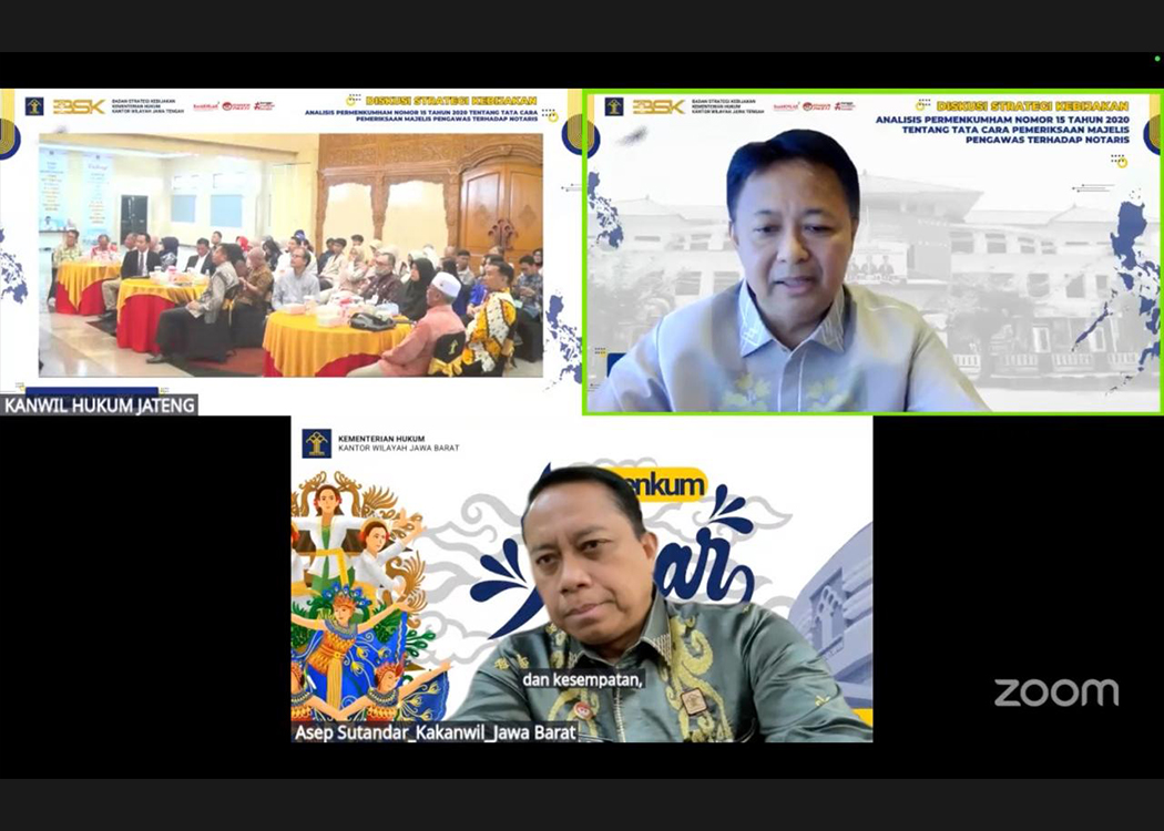 BANDUNG – Kantor Wilayah Kemenkum Jawa Barat secara proaktif mengikuti Diskusi Strategi Kebijakan (DSK) yang diinisiasi oleh Kanwil Kemenkum Jawa Tengah secara virtual pada Kamis, 9 Oktober 2025. Partisipasi ini merupakan tindak lanjut atas arahan Kepala Kantor Wilayah Kemenkum Jawa Barat, Asep Sutandar, yang menugaskan Kepala Divisi Peraturan Perundang-Undangan dan Pembinaan Hukum, Funna Maulia Massaile, beserta jajarannya untuk mengkaji secara mendalam isu-isu strategis terkait pengawasan notaris.