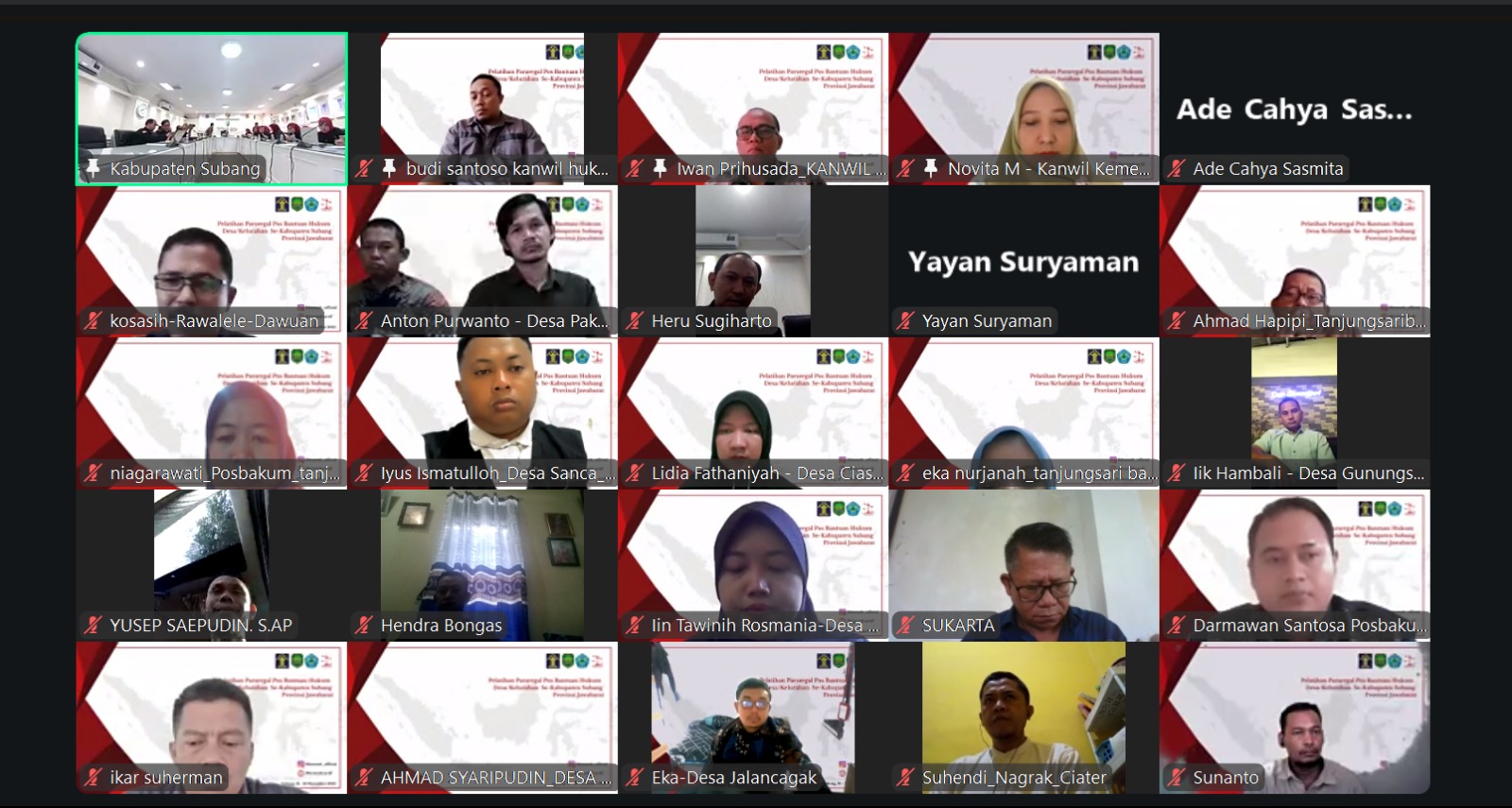 SUBANG – Kantor Wilayah Kementerian Hukum (Kemenkum) Jawa Barat kembali menunjukkan komitmen nyatanya dalam memperluas akses keadilan bagi masyarakat hingga ke pelosok desa. Bekerja sama dengan Pemerintah Daerah Kabupaten Subang dan Lembaga Bantuan Hukum (LBH) Universitas Subang, Kemenkum Jabar sukses menggelar pembukaan dan pelaksanaan Pendidikan dan Pelatihan (Diklat) Paralegal Mandiri Serentak Gelombang XIII. Kegiatan yang dilaksanakan secara virtual pada Jumat, 21 November 2025 ini dihadiri oleh ratusan peserta yang siap dididik menjadi ujung tombak bantuan hukum non-litigasi di wilayah Kabupaten Subang.