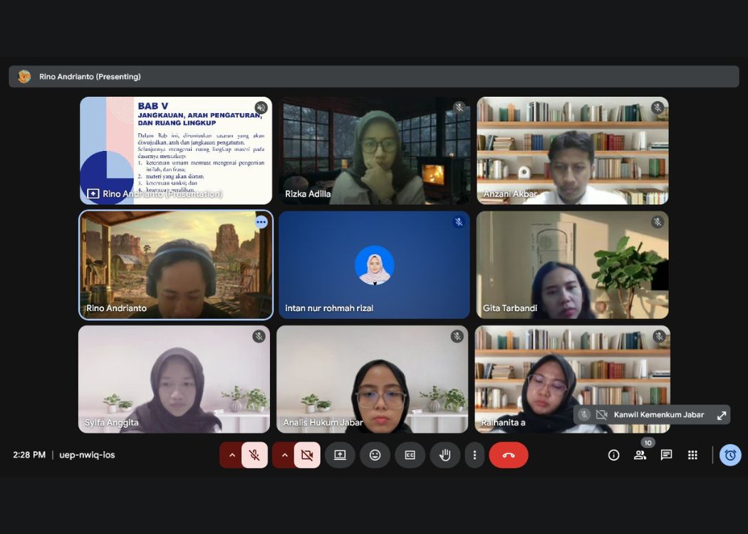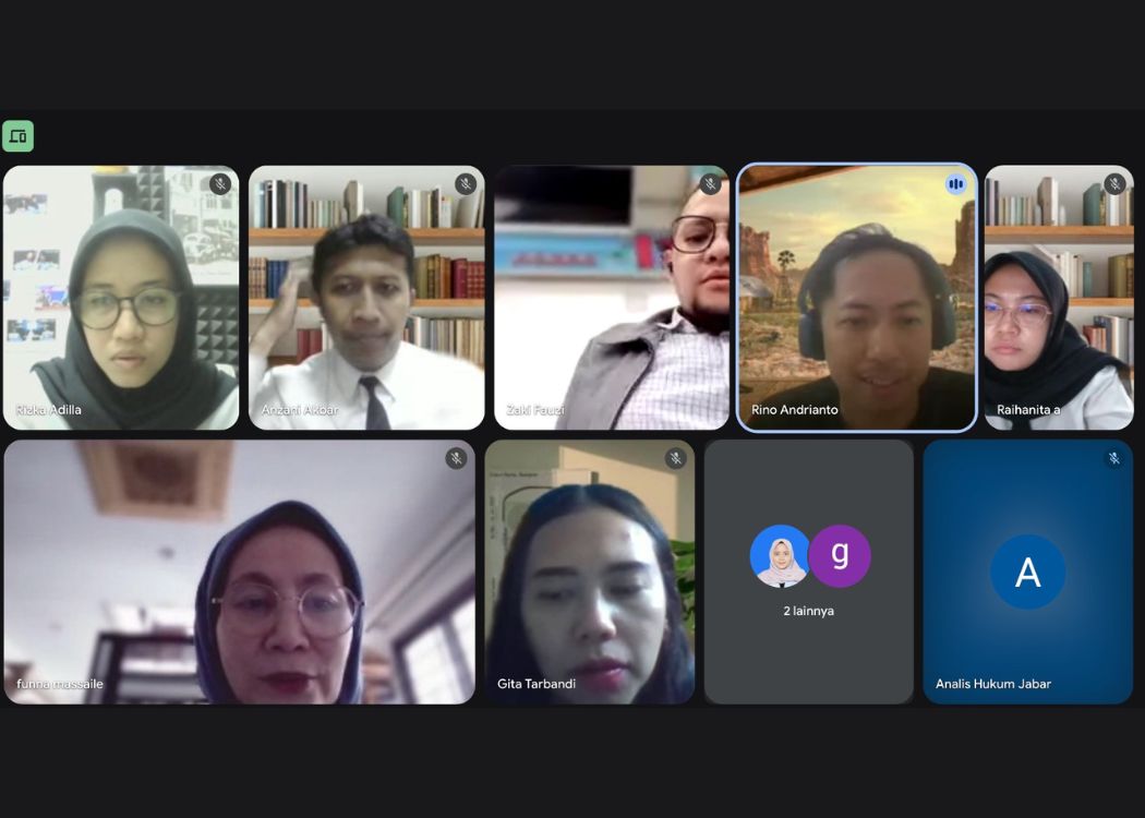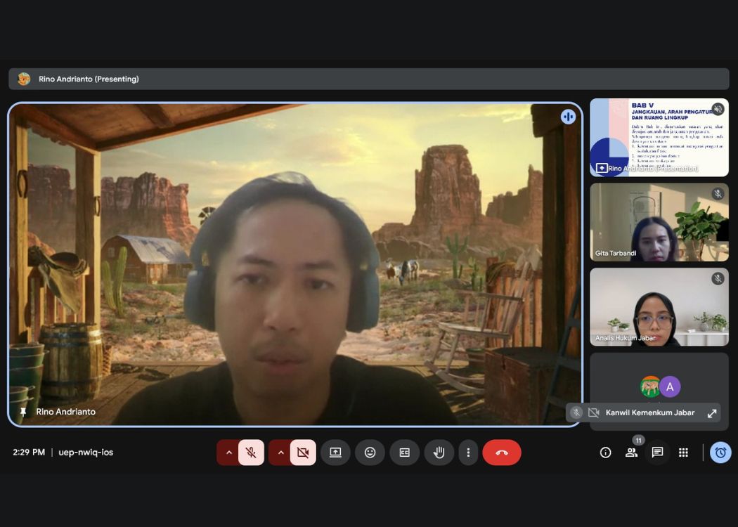 BANDUNG – Kantor Wilayah Kemenkum Jawa Barat (Kemenkum Jabar) kembali menggelar agenda rutin "Nongki Santai" (Ngobrol Kolaborasi Saling Tukar Ilmu) secara virtual melalui aplikasi Zoom, Jumat (19/09/2025). Kegiatan ini merupakan implementasi arahan Kepala Kantor Wilayah Kemenkum Jawa Barat, Asep Sutandar, yang konsisten mendorong peningkatan kompetensi dan kualitas SDM, khususnya para pejabat fungsional di lingkungannya.