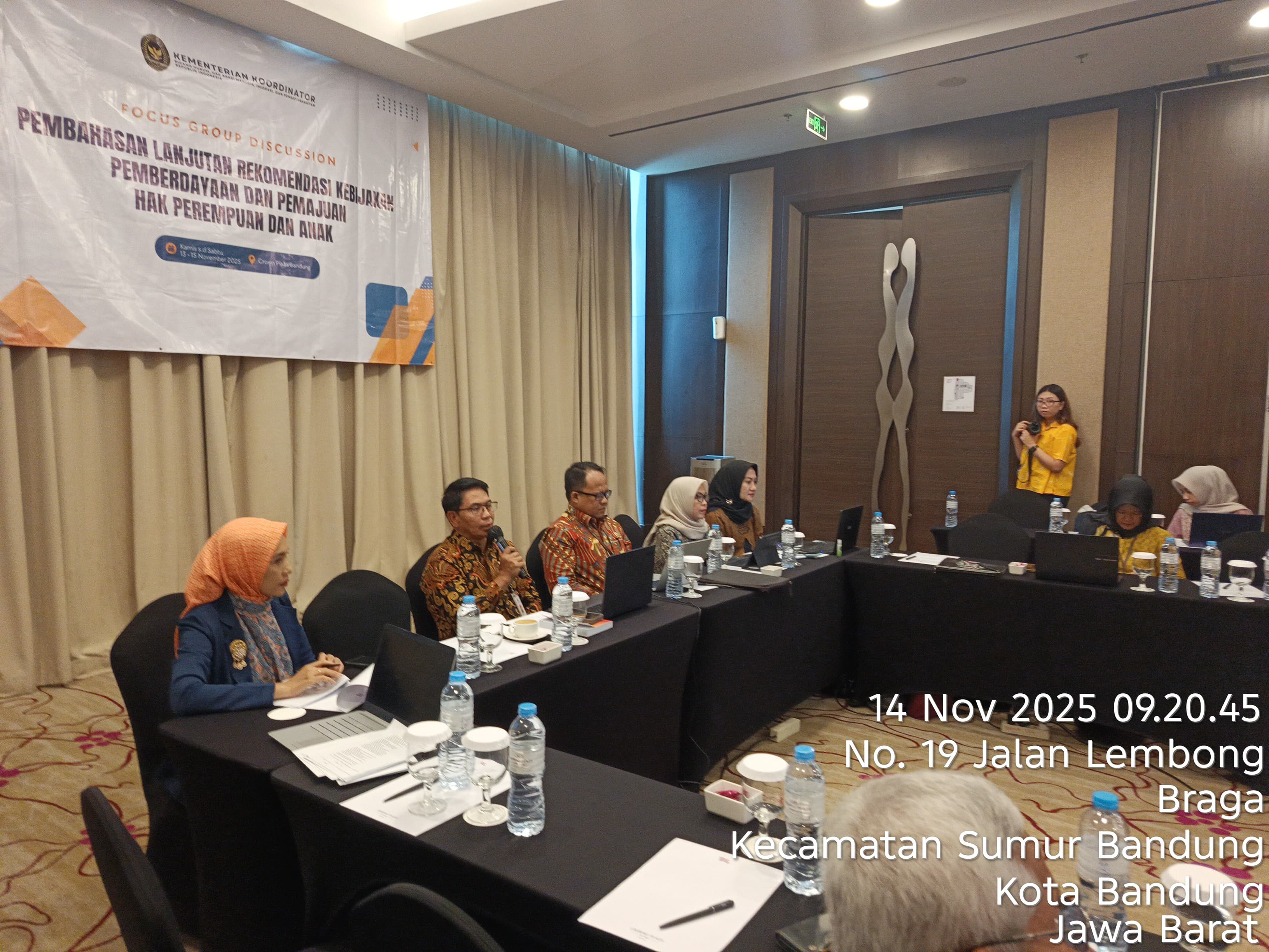 Kantor Wilayah Kementerian Hukum (Kemenkum) Jawa Barat kembali menunjukkan komitmennya dalam penguatan perlindungan Hak Asasi Manusia (HAM) bagi kelompok rentan. Hal ini terlihat dari kehadiran Kemenkum Jabar dalam kegiatan Focus Group Discussion (FGD) Pembahasan Rekomendasi Kebijakan Pemberdayaan dan Pemajuan Hak Perempuan dan Anak yang diselenggarakan oleh Kementerian Koordinator Bidang Hukum, HAM, dan IMIPAS. Bertempat di Hotel Crowne Plaza Bandung pada Jumat, 14 November 2025, kegiatan ini menjadi wadah strategis untuk menyelaraskan langkah antarinstansi pemerintah dalam menangani isu-isu krusial terkait perempuan dan anak di Indonesia.