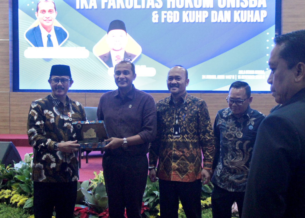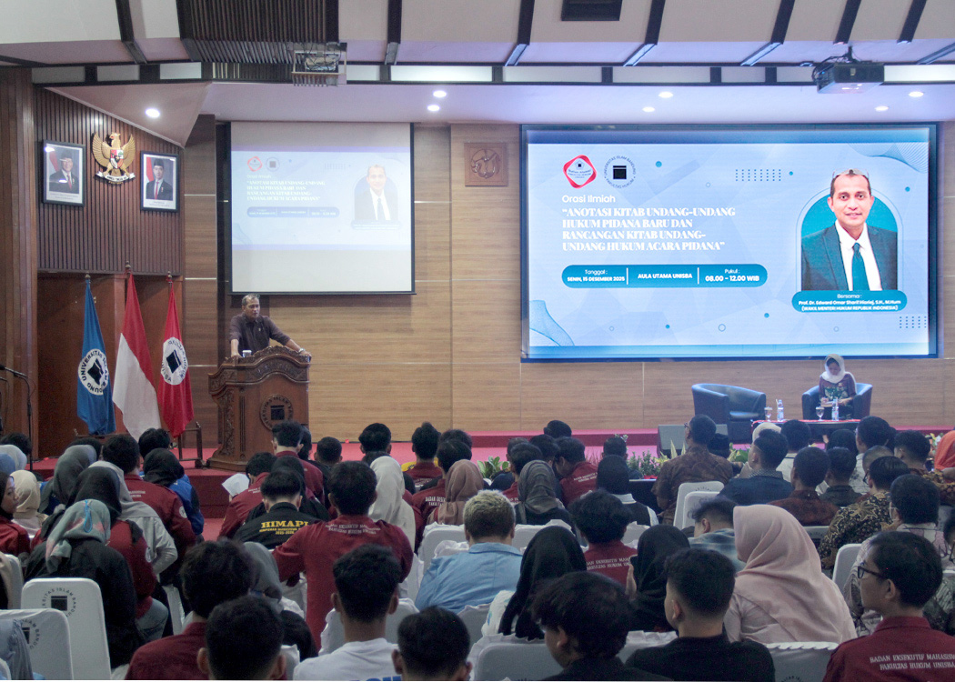 BANDUNG – Kepala Kantor Wilayah Kementerian Hukum Jawa Barat (Kakanwil Kemenkum Jabar) Asep Sutandar pada pagi hari ini mendampingi Wakil Menteri Hukum Edward Omar Sharif Hiariej dalam kegiatan Orasi Ilmiah bertema “Anotasi Kitab Undang-Undang Hukum Pidana (KUHP) Baru dan Kitab Undang-Undang Hukum Acara Pidana (KUHAP)” (Senin, 15/12/2025).