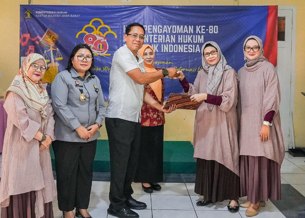 BANDUNG - Dalam rangka memperingati Hari Pengayoman ke-80, Dharma Wanita Persatuan (DWP) Kantor Wilayah Kementerian Hukum Jawa Barat (Kanwil Kemenkum Jabar) pada hari ini melaksanakan rangkaian kegiatan Bakti Sosial yang bertempat di Panti Sosial Tresna Wedha Budhi Pertiwi dan berlokasi di wilayah Kota Bandung (Jumat, 18/07/2025).