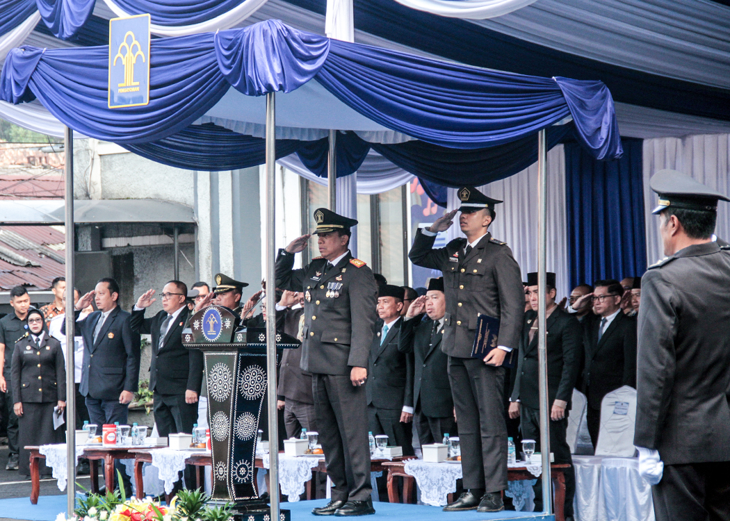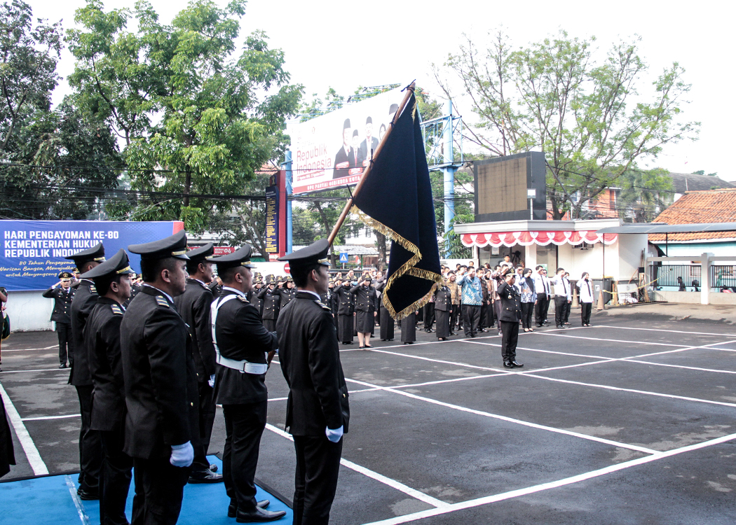 BANDUNG – Kantor Wilayah Kemenkum Jawa Barat (Kemenkum Jabar) menggelar upacara khidmat untuk memperingati Hari Pengayoman ke-80, hari ini, Jum’at, 22 Agustus 2025. Bertindak sebagai Inspektur Upacara, Kepala Kantor Wilayah Kemenkum Jawa Barat, Asep Sutandar, memimpin langsung jalannya upacara yang dihadiri oleh berbagai mitra strategis, termasuk Wakil Walikota Bandung Erwin Affandi, perwakilan Forum Komunikasi Pimpinan Daerah (Forkopimda), pimpinan instansi vertikal, rektor universitas, hingga tokoh masyarakat dan dunia usaha.\