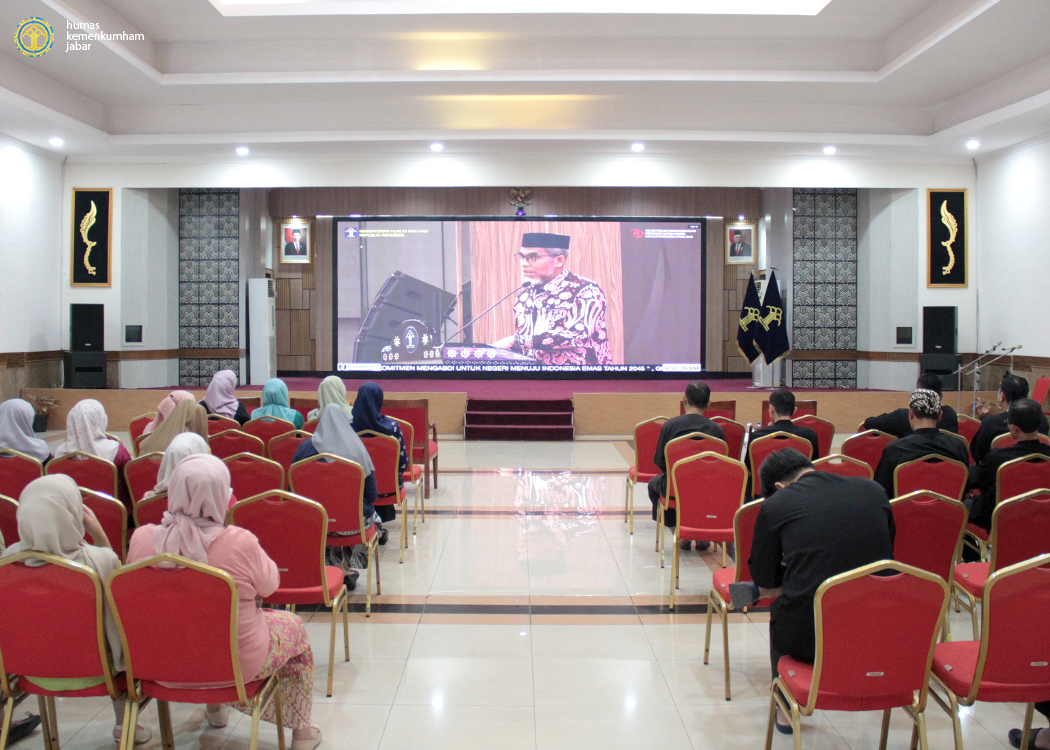 Pada aula Soepomo, Kanwil Jabar, jajaran pegawai Kanwil Kemenkumham Jabar menghadiri kegiatan ceramah yang berpusat di Graha Pengayoman, Jakarta, dan diikuti oleh seluruh Satuan Kerja Kemenkumham se-Indonesia. Dibuka oleh Kepala BPSDM Kumham Razilu, kegiatan kali ini menghadirkan Ustad Muhammad Syauqi MZ sebagai penceramah dalam acara ini.