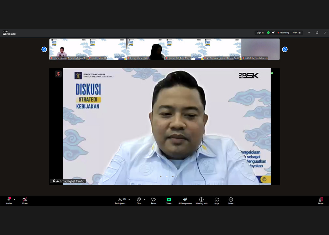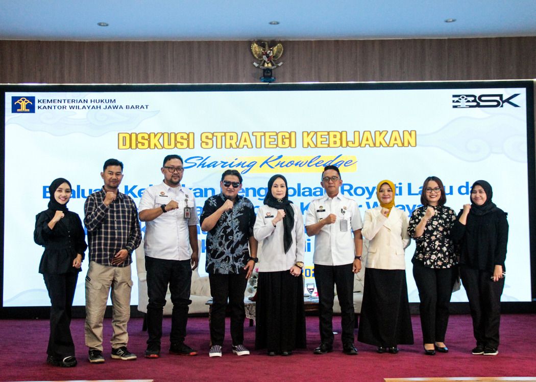 BANDUNG – Kantor Wilayah Kemenkum Jawa Barat (Kemenkum Jabar) menggelar Diskusi Strategi Kebijakan (DSK) yang berfokus pada evaluasi tata kelola royalti lagu dan musik pada Rabu, 10 September 2025. Hadir Kakanwil Kemenkum Jabar, Asep Sutandar, KadivP3H Jabar, Funna Maulia, Kabid Yan KI Kemenkum Jabar, Ery Kurniawan, dan Narasumber Musis sekaligus Pelaku Industri, Kang Pepep ST 12.