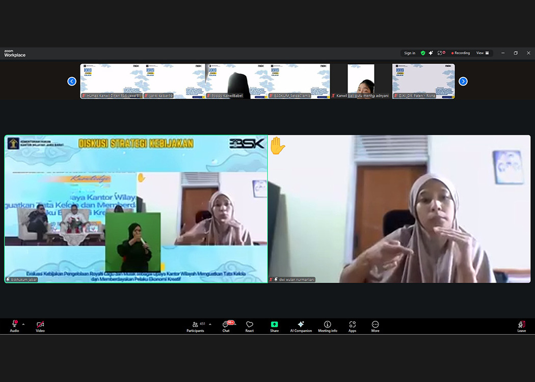 Kabid Yan KI Kemenkum Jabar, Ery Kurniawan, memaparkan hasil temuan evaluasi di lapangan yang menyoroti sejumlah kendala, seperti distribusi royalti yang belum transparan, rendahnya kepatuhan pengguna, disharmoni antara Lembaga Manajemen Kolektif (LMK) dan Lembaga Manajemen Kolektif Nasional (LMKN), serta minimnya sistem digital yang terintegrasi.