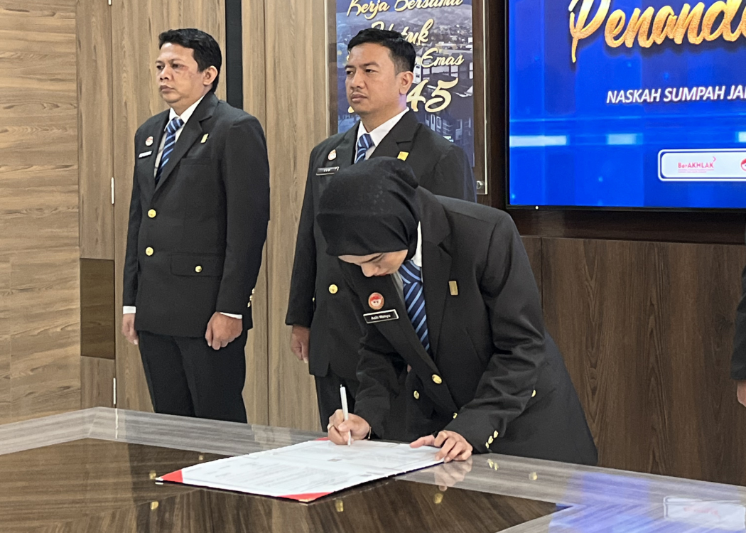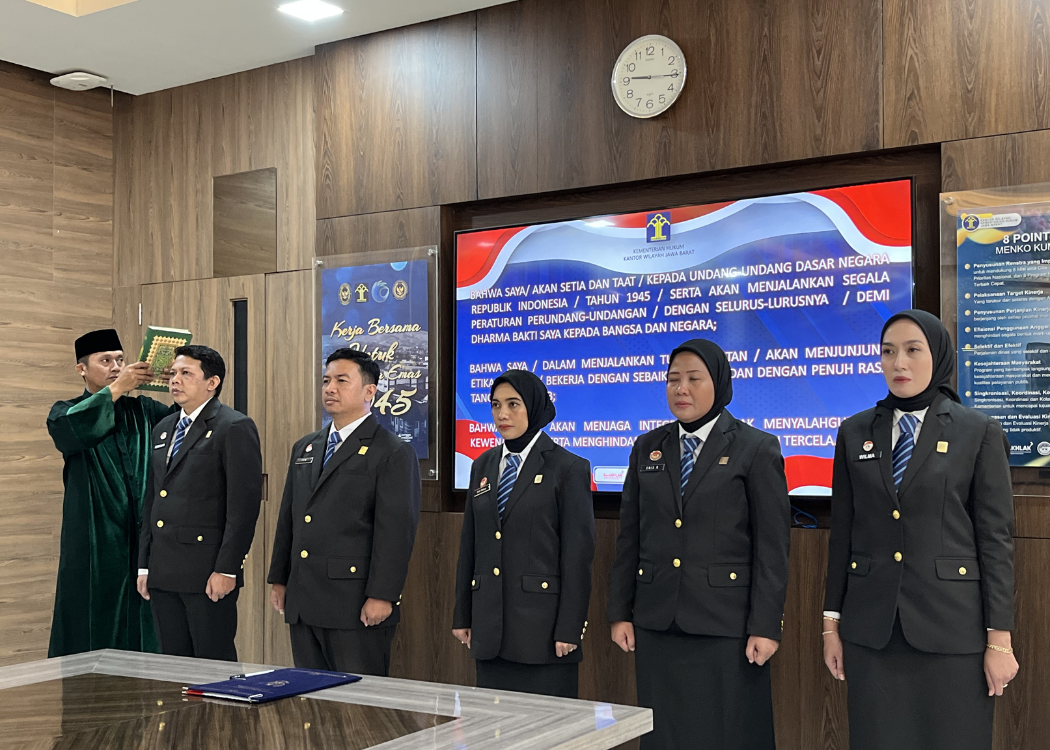 Kantor Wilayah Kemenkum Jawa Barat menggelar upacara Pengambilan Sumpah dan Pelantikan Pejabat Non Manajerial pada Kamis, 2 April 2026. Kegiatan yang berlangsung di Ruang Rapat Sahardjo, Kanwil Jabar ini, merupakan tindak lanjut atas kenaikan jenjang jabatan dan perpindahan dari jabatan lain bagi lima orang pegawai di lingkungan Kemenkum Jabar, yaitu Ferdinan Purnama Osa, Asih Wahyuningsih, Adityo Rachman, Wilma Nurul Hikmah, dan Eris Risdiantini. Acara ini dihadiri langsung oleh Kepala Kantor Wilayah Kemenkum Jawa Barat, Asep Sutandar, didampingi oleh Kepala Bagian Tata Usaha dan Umum, serta jajaran pegawai penyuluh hukum yang akan dilantik.