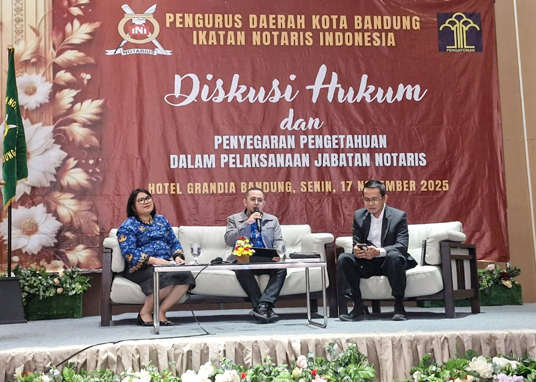 BANDUNG – Kanwil Kemenkum Jabar menegaskan komitmennya untuk memperkuat pembinaan dan pengawasan notaris di Jawa Barat. Hal ini disampaikan langsung oleh Kakanwil Kemenkum Jabar, Asep Sutandar, saat menghadiri Diskusi Hukum bertajuk "Penyegaran Pengetahuan Dalam Pelaksanaan Jabatan Notaris" yang diselenggarakan oleh Pengurus Ikatan Notaris Indonesia (INI) Kota Bandung di Hotel Grandia, Kota Bandung, Senin (17/11/2025).
