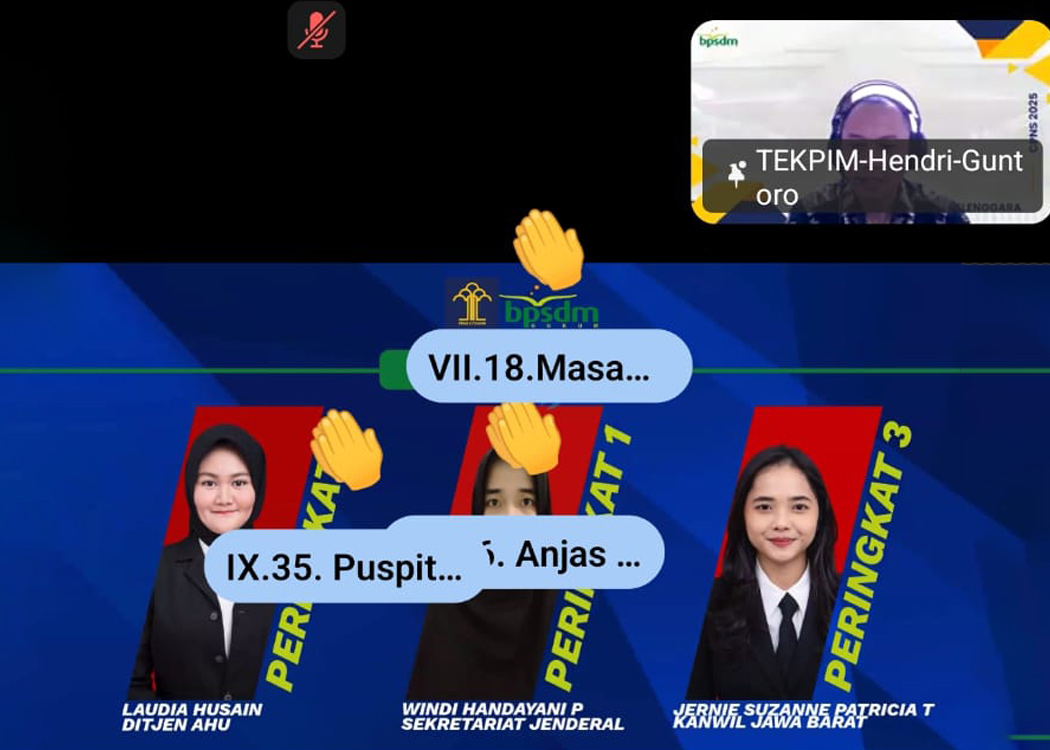 Capaian prestasi kedua CPNS ini menjadi bukti nyata keseriusan para peserta Latsar dalam menyerap materi pelatihan serta dedikasi mereka dalam membentuk karakter ASN yang berakhlak. Kehadiran Tim Kerja Kepegawaian Kanwil Jabar yang mendampingi para peserta di Ruang Rapat Sahardjo turut memberikan dukungan moril dan memastikan seluruh rangkaian kegiatan penutupan berjalan lancar.