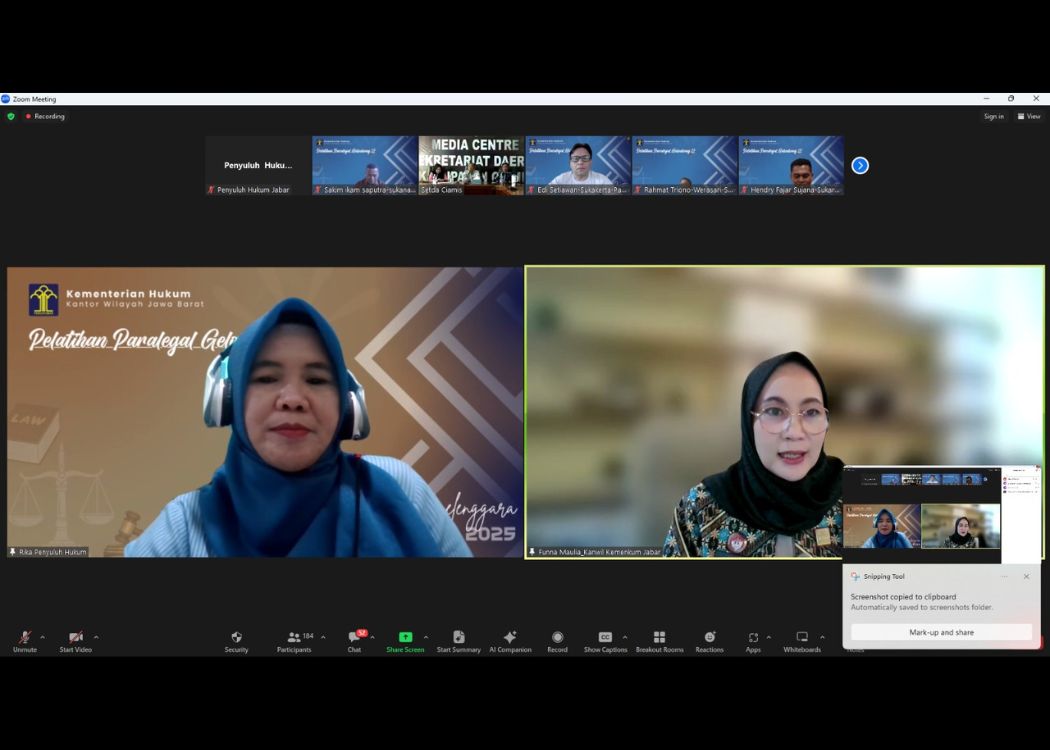 BANDUNG – Kanwil Kemenkum Jabar konsisten perkuat komitmennya dalam memperluas akses keadilan bagi masyarakat, khususnya di tingkat desa dan kelurahan. Sebagai wujud nyata dari komitmen tersebut, Kemenkum Jabar bekerja sama dengan Lembaga Bantuan Hukum (LBH) Peradi Kabupaten Ciamis sukses menggelar Pendidikan dan Pelatihan Paralegal Mandiri Gelombang XII. Kegiatan yang berlangsung secara virtual melalui Zoom Meeting ini dilaksanakan selama dua hari, mulai tanggal 20 hingga 21 November 2025, dan diikuti oleh total 260 peserta dari berbagai latar belakang.