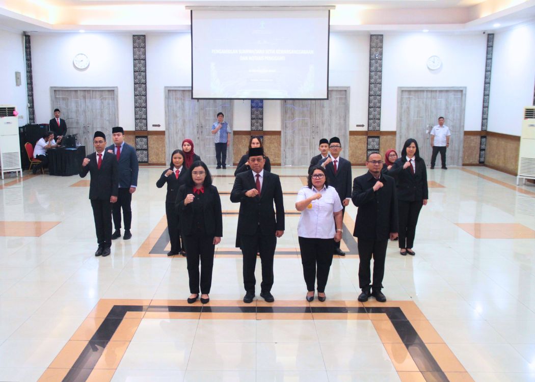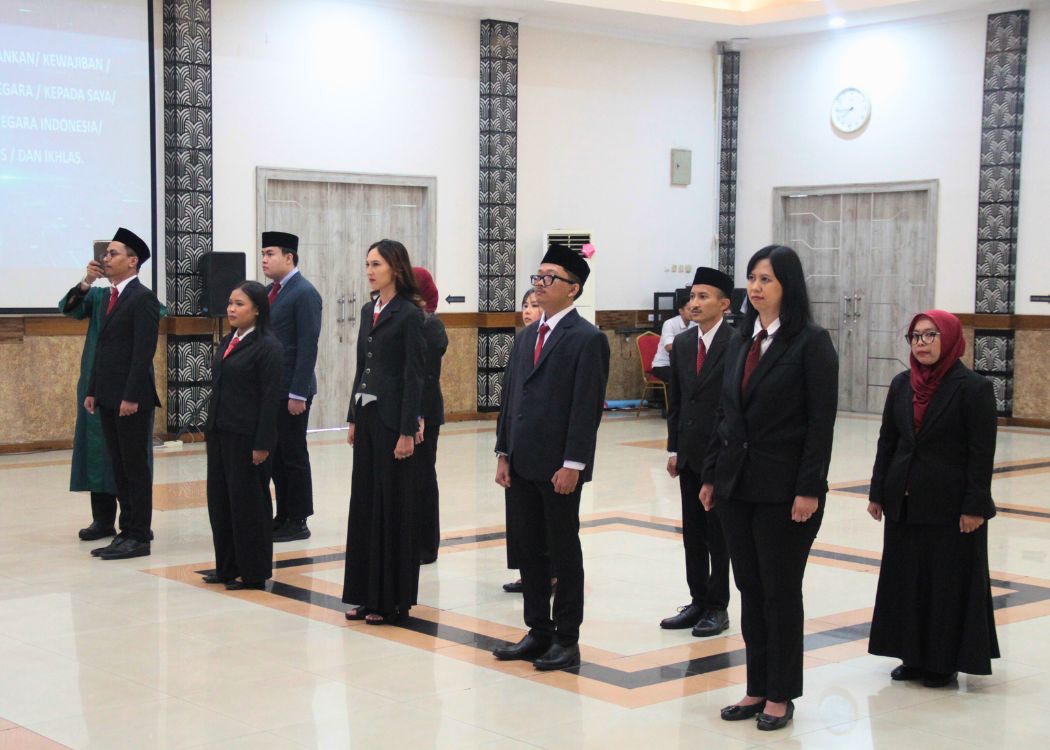 BANDUNG – Kantor Wilayah Kementerian Hukum Jawa Barat (Kemenkum Jabar) kembali menegaskan komitmennya dalam memberikan kepastian hukum dan perlindungan hak sipil melalui upacara Pengambilan Sumpah/Janji Setia Pewarganegaraan serta Pelantikan dan Pengambilan Sumpah Jabatan Notaris Pengganti yang digelar pada Rabu, 18 Februari 2026. Bertempat di Aula Kantor Wilayah, Kakanwi Kemenkum Jabar, Asep Sutandar, pimpin langsung jalannya prosesi sakral tersebut yang dihadiri oleh Kadivyankum Jabar, Hemawati BR Pandia, Pejabat Manajerial, serta rohaniwan.
