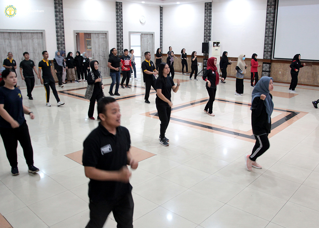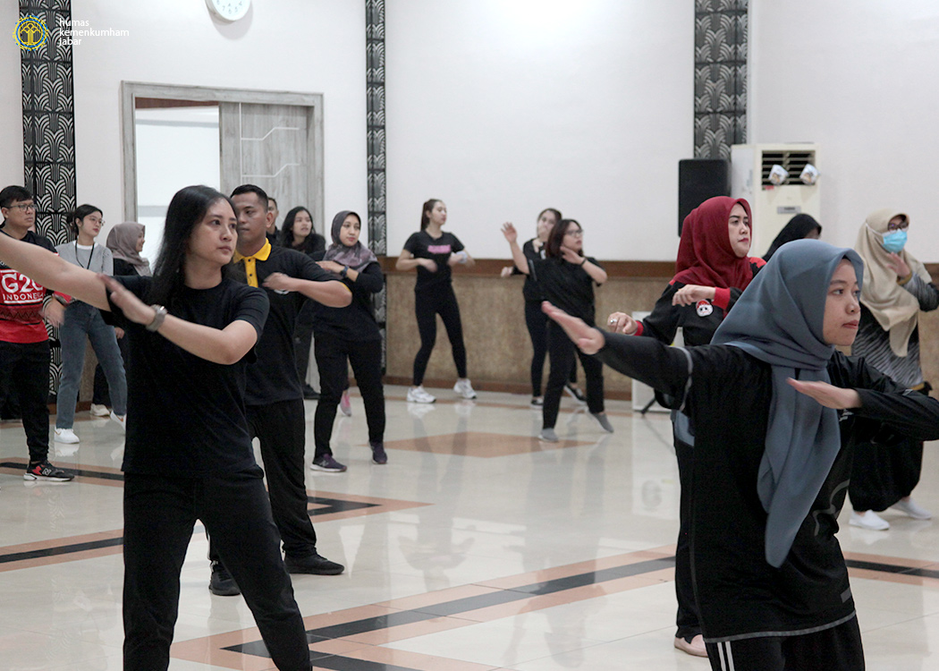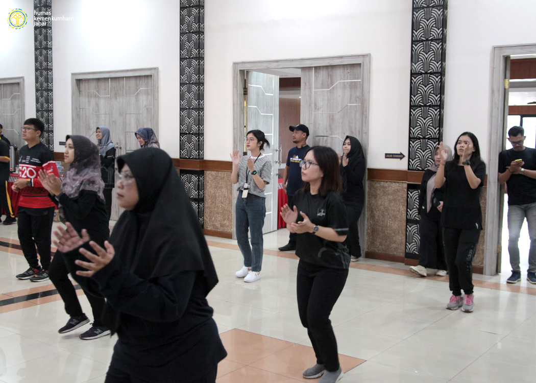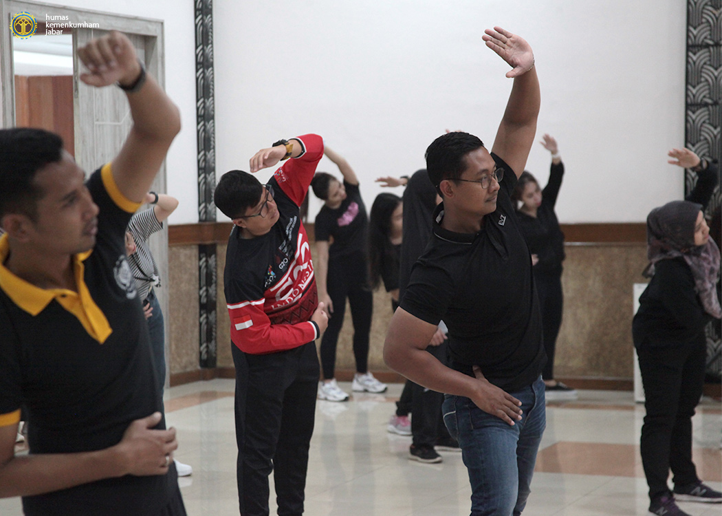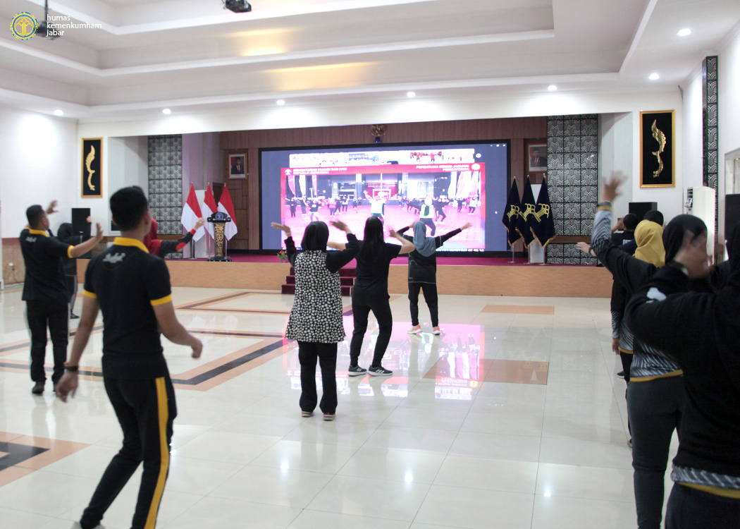 Bertempat di aula Soepomo, Kanwil Jabar, para pejabat dan pegawai Kanwil Jabar dengan mengenakan pakaian olahraga bernuansa hitam melaksanakan aktifitas senam pagi yang juga diikuti oleh Satker - Satker Kemenkumham di seluruh Indonesia secara daring melalui Zoom Meeting. Olahraga senam pagi bersama ini berjalan selama sekitar 45 menit.