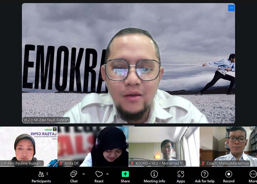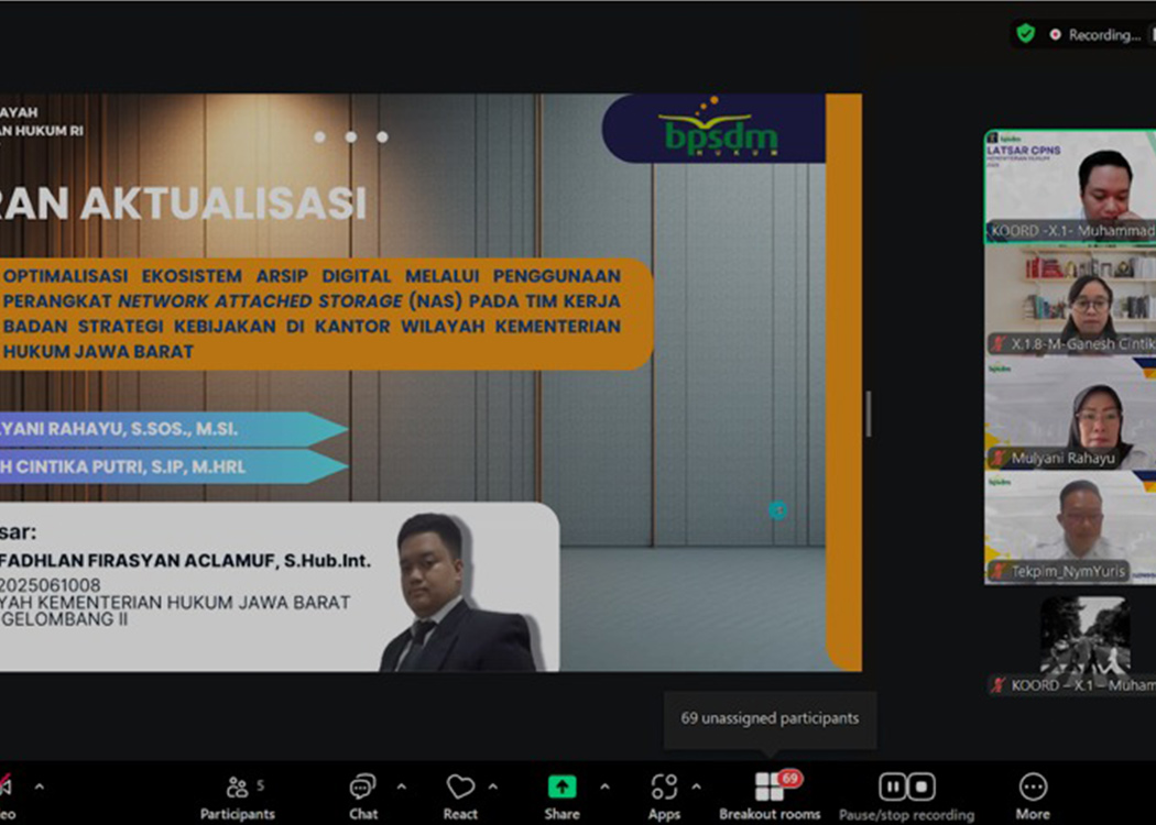 BANDUNG – Calon Pegawai Negeri Sipil (CPNS) Kantor Wilayah Kementerian Hukum Jawa Barat (Kanwil Kemenkum Jabar) melaksanakan Seminar Laporan Aktualisasi Pelatihan Dasar CPNS Gelombang II Tahun Angkatan 2025 yang dilaksanakan secara daring melalui Zoom Meeting (Rabu, 26/11/2025).