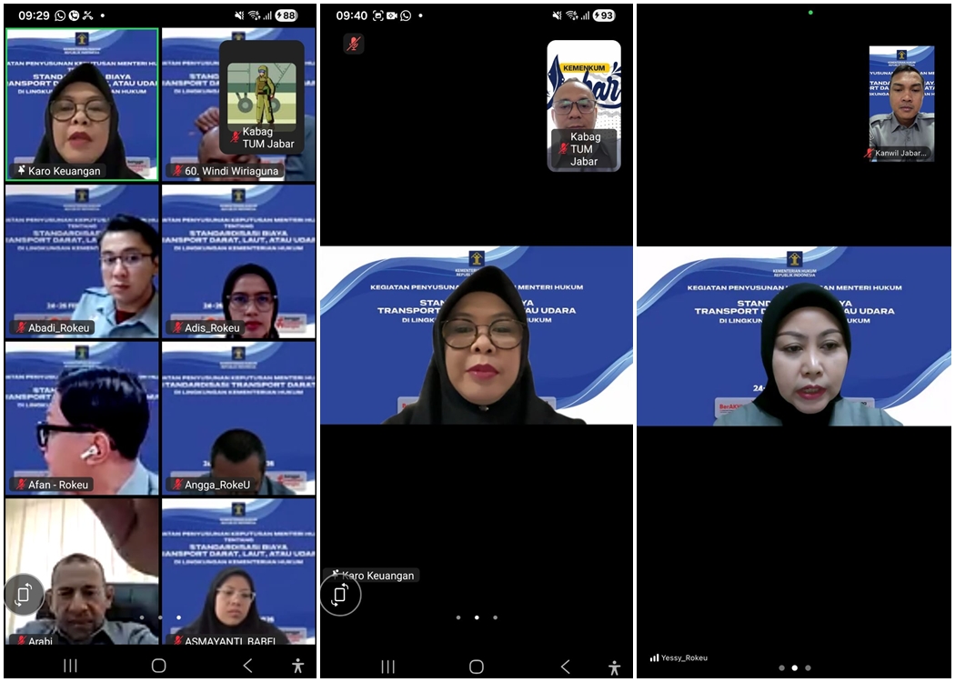 BANDUNG – Kanwil Kemenkum Jabar kembali tunjukkan komitmen dalam mendukung tertib administrasi dan efisiensi anggaran negara. Hal ini dibuktikan dengan partisipasi aktif Kanwil Kemenkum Jabar dalam Rapat Penyusunan Konsep Keputusan Menteri Hukum Tentang Standardisasi Biaya Transport Darat, Laut atau Udara di Lingkungan Kementerian Hukum. Kegiatan strategis ini diselenggarakan secara virtual melalui Zoom Meeting. Adapun rangkaian rapat ini dijadwalkan berlangsung selama dua hari, yakni pada hari Selasa hingga Rabu, tanggal 24 sampai dengan 25 Februari 2026.