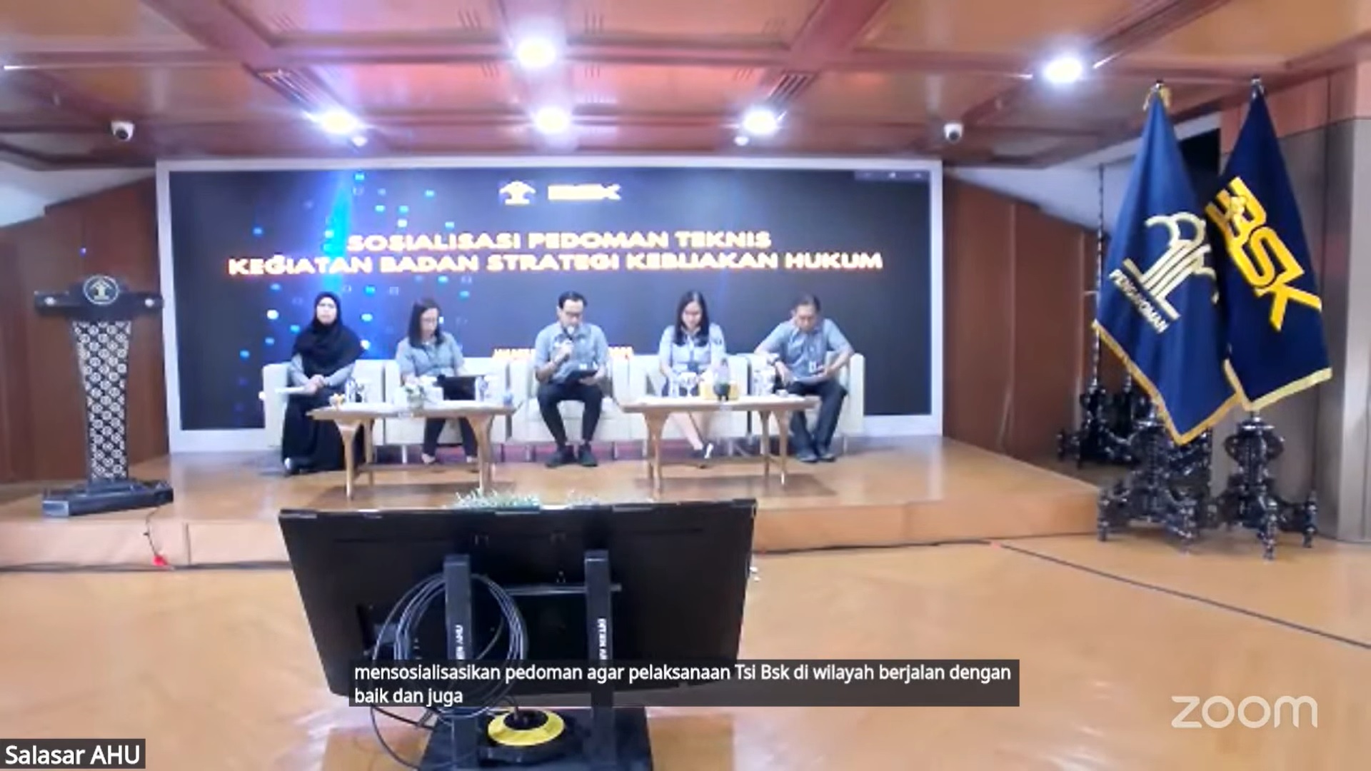 Badan Strategi Kebijakan (BSK) Hukum menggelar kegiatan Sosialisasi Pedoman Teknis Kegiatan BSK di Wilayah Tahun 2026 yang dilaksanakan pada Selasa, 10 Februari 2026. Kegiatan yang berlangsung secara hibrida ini berpusat di Selasar Lantai 1 Gedung Ditjen AHU, Jakarta, dan diikuti secara virtual oleh Kantor Wilayah dari seluruh Indonesia. Perwakilan dari Kantor Wilayah Kementerian Hukum Jawa Barat, Kepala Divisi Peraturan Perundang-Undangan dan Pembinaan Hukum Ferry Gunawan C. beserta jajaran turut hadir aktif secara virtual yang bertempat di Ruang Suhendro Hendarsin. Kegiatan ini sebagai bentuk komitmen dalam memperkuat tata kelola perencanaan dan pelaksanaan kegiatan strategis di daerah. Kehadiran tim dari Jawa Barat ini selaras dengan arahan Kepala Kantor Wilayah Kemenkum Jabar, Asep Sutandar, yang terus mendorong jajarannya untuk memastikan setiap kebijakan hukum di wilayah didasarkan pada data yang akurat dan hasil analisis yang mendalam.