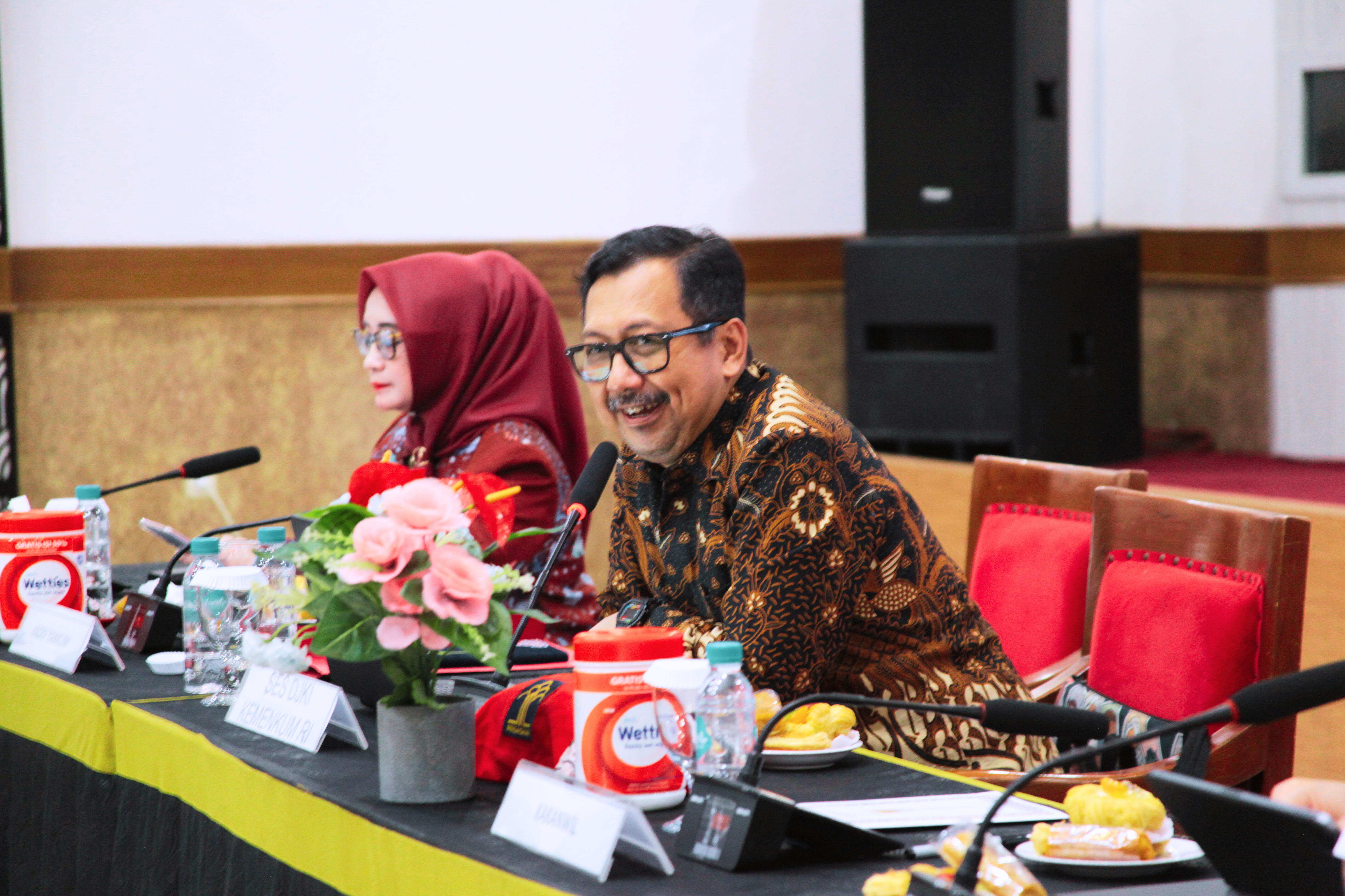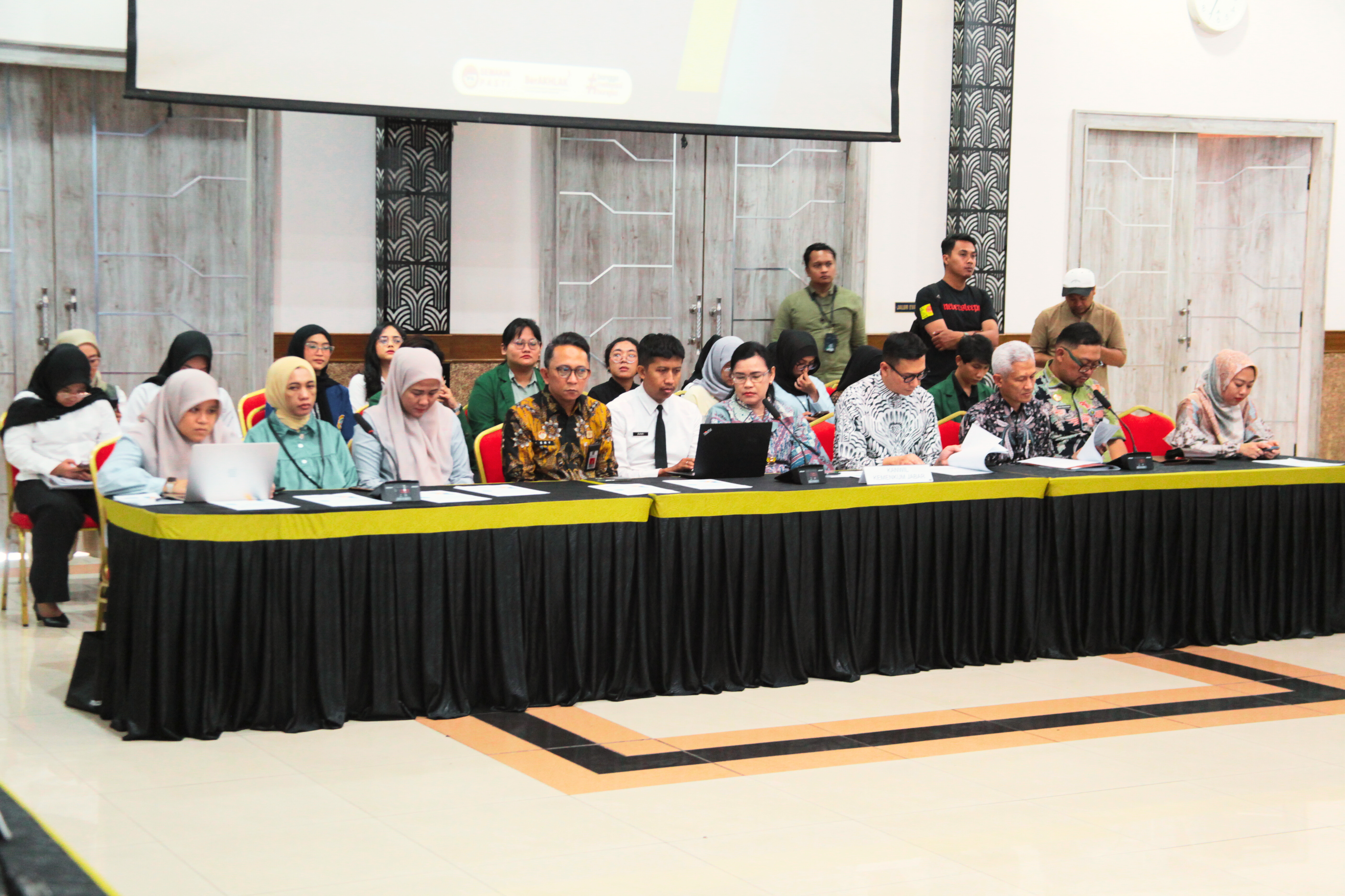 Tampak hadir Sekretaris Direktorat Jenderal Kekayaan Intelektual Andrieansjah, Kepala Kantor Wilayah Kementerian Hukum Jawa Barat Asep Sutandar, Guru Besar Universitas Padjadjaran Ahmad M. Ramli, Ketua Ikano Universitas Padjadjaran Ranti Fauza Mayana, Kepala Divisi Peraturan Perundang-Undangan dan Pembinaan Hukum Funna Maulia Massaile, Kepala Divisi Pelayanan HukumHemawati Br Pandia, Deputi Direktur/ Kepala Divisi Pengawasan Lembaga Jasa Keuangan 4 OJK Purwanto Soemarto, Deputi Direktur Bank Indonesia Yon Widiyono, Kepala Bidang Pelayanan Administrasi Hukum Umum Ave Maria Sihombing, Kepala Bidang Pelayanan Kekayaan Intelektual Ery Kurniawan, egional Office Head of Bank BNI Rinaldo, Regional Office Head of Bank BTN Waluyo, Kepala Bidang Industri Pariwisata Rispiagi dan perwakilan dari Ikatan Notaris Indonesia serta perwakilan IPPAT maupun mahasiswa/I UNPAD.