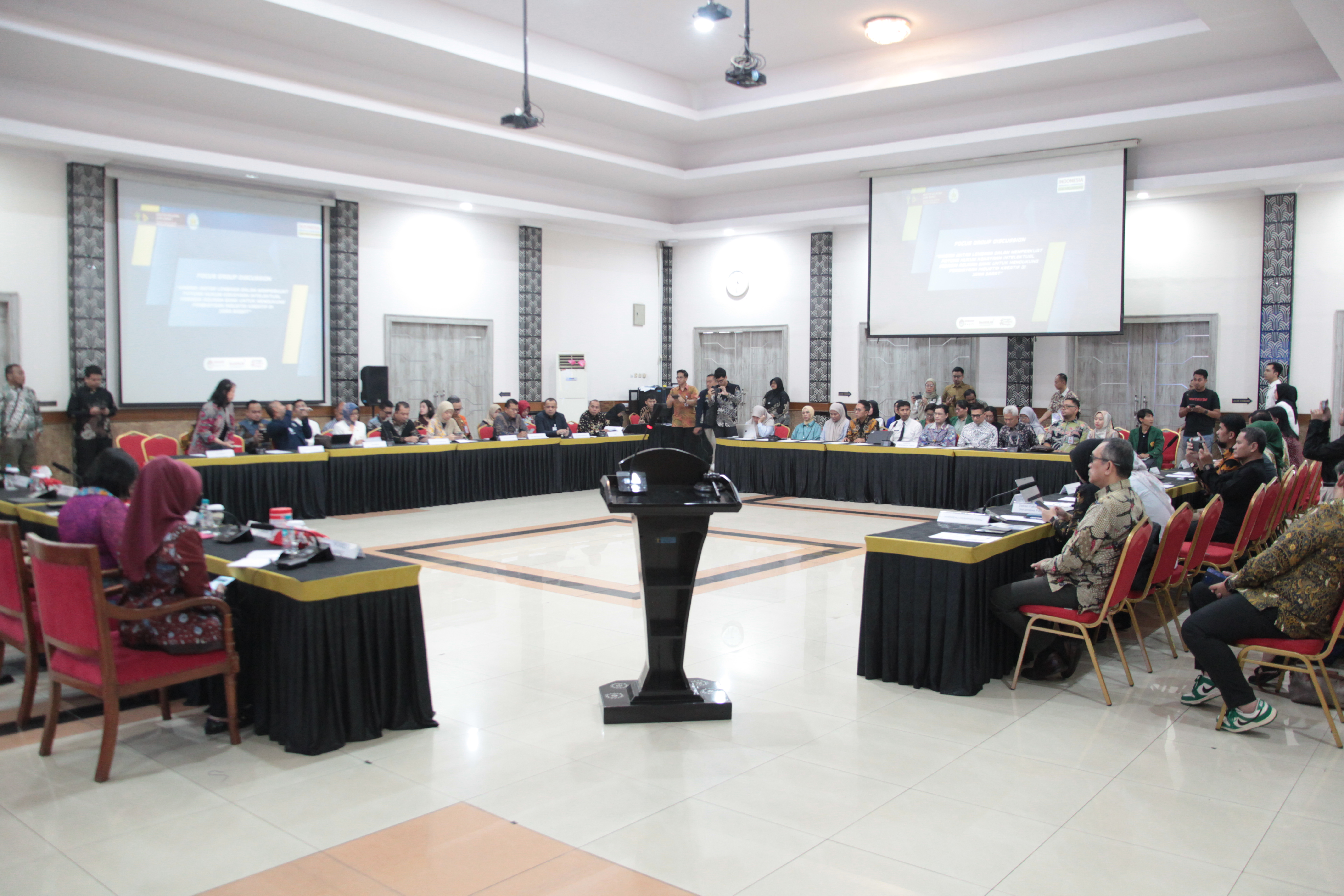 FGD ini digagas untuk mengatasi tantangan fundamental dalam implementasi Kekayaan Intelektual (KI) sebagai agunan bank. Meskipun PP Nomor 24 Tahun 2022 dan POJK Nomor 19 Tahun 2025 telah membuka jalan, masih ada disinkronisasi regulasi. Hambatan utama terletak pada Peraturan Bank Indonesia (PBI) Nomor 14/15/PBI/2012 yang menjadi rujukan utama bank , namun belum memasukkan KI sebagai bentuk agunan yang diakui. Untuk menjembatani hal ini, hadir perwakilan kunci dari DJKI , Bank Indonesia (BI) , Otoritas Jasa Keuangan (OJK) , akademisi Unpad , Disparbud , praktisi notaris , dan Himpunan Bank Milik Negara (HIMBARA).