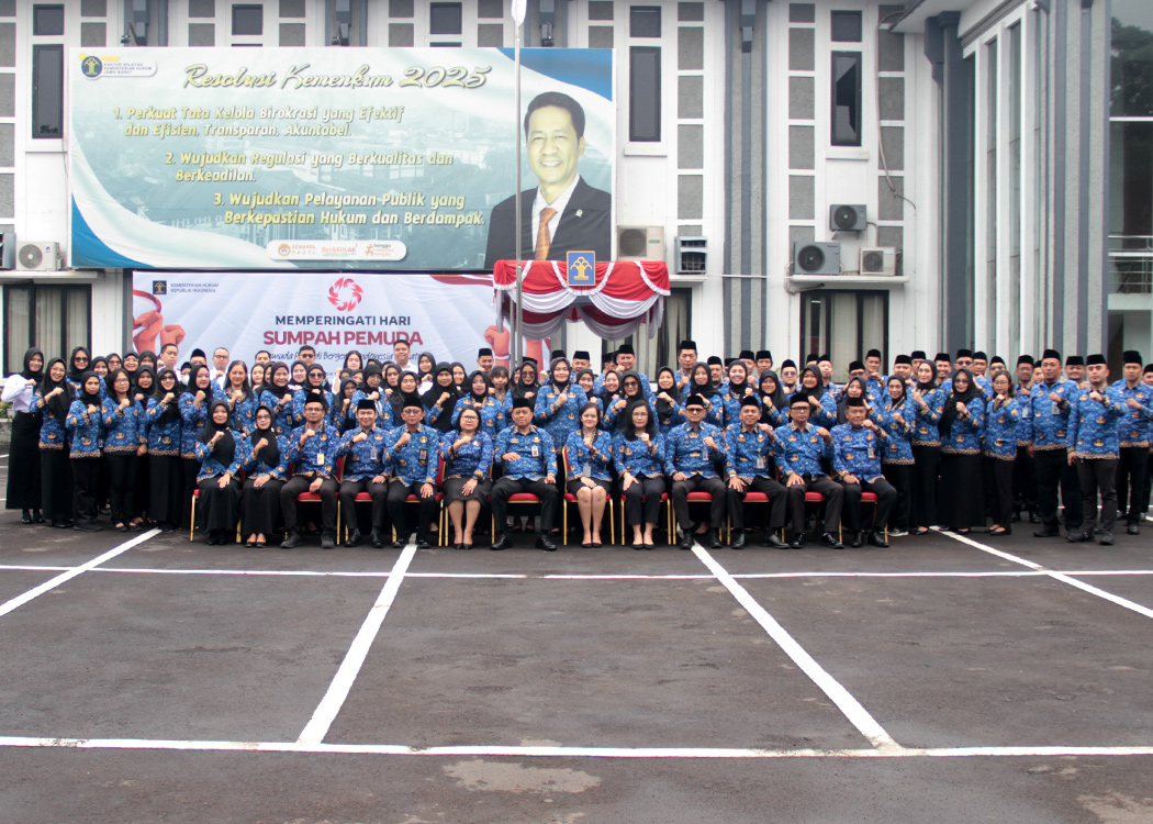 BANDUNG – Kantor Wilayah Kementerian Hukum Jawa Barat (Kanwil Kemenkum Jabar) pada pagi ini melaksanakan Upacara Peringatan Hari Sumpah Pemuda Ke-97 yang bertempat di Lapangan Upacara Kanwil Jabar (Selasa, 28/10/2025).