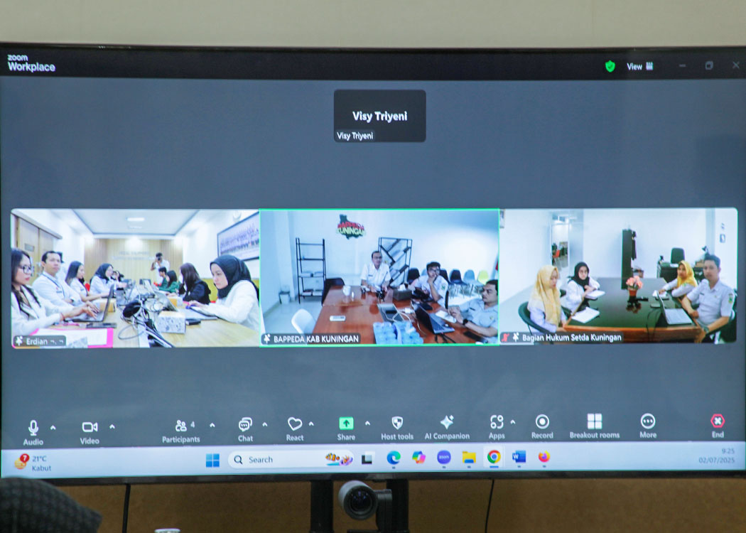Kegiatan ini dipimpin oleh Kepala Divisi Peraturan Perundang - Undangan dan Pembinaan Hukum Funna Maulia Massaile dan Perancang Perundang-undangan Kelompok Kerja 1 ( Shendy S., Erdian, Visy T., Novarisma, Risma, Gita bersama sejumlah CPNS dan mahasiswi magang) serta perwakilan dari Pemerintah Daerah Kabupaten Kuningan turut bergabung secara daring.